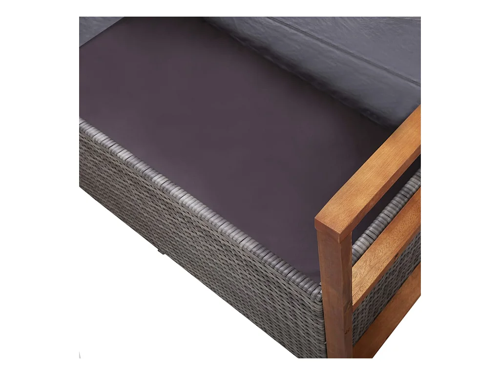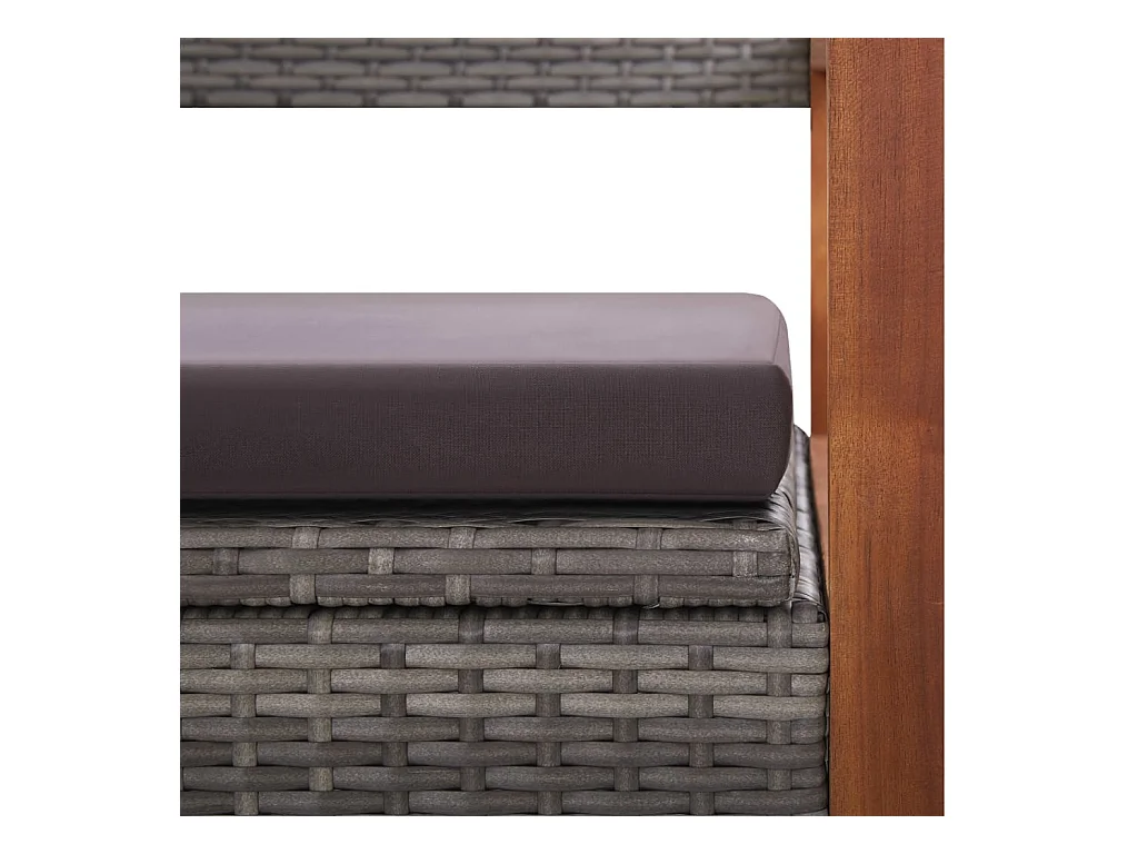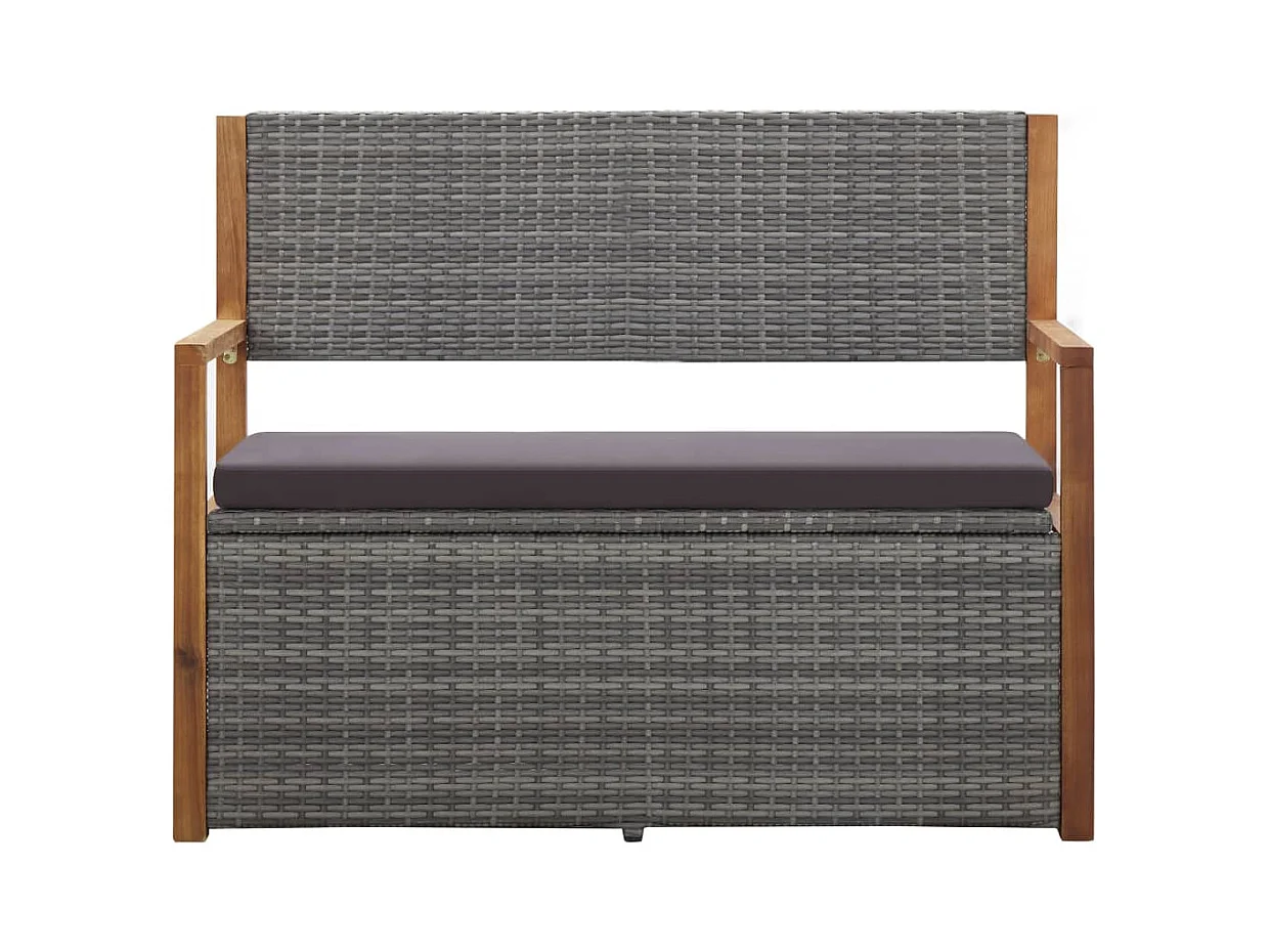 Banco de jardín con almacenaje y cojín gris ratán sintético