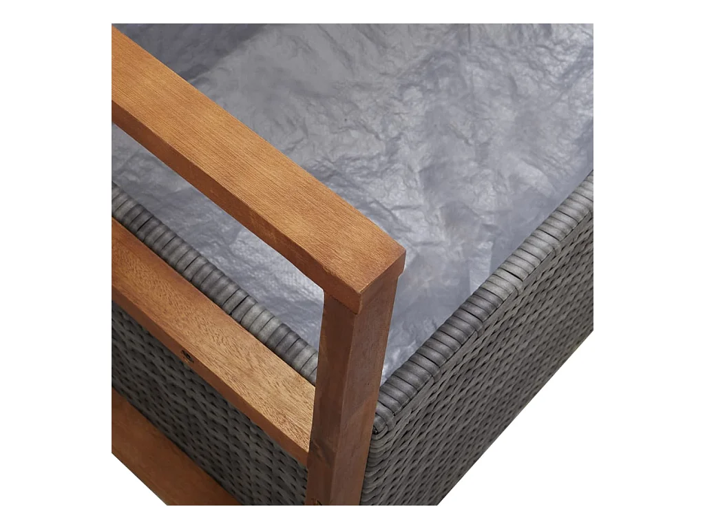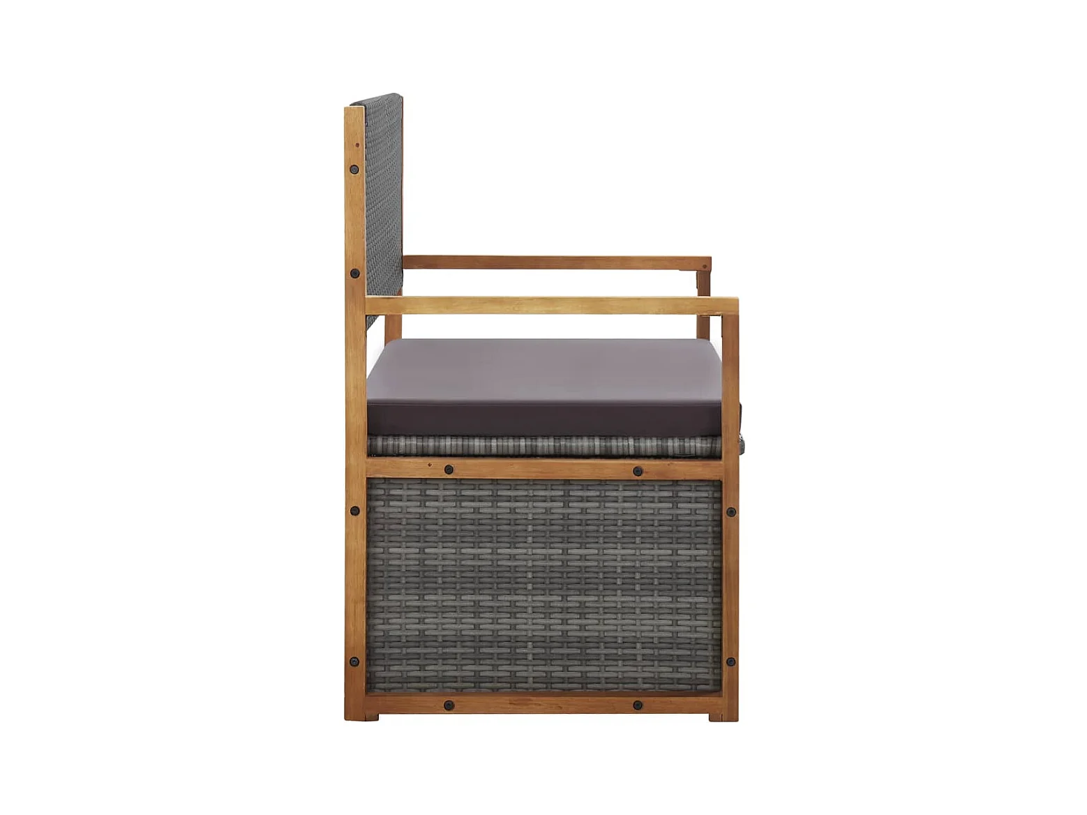 Banco de almacenaje ratán sintético madera acacia gris 115 cm