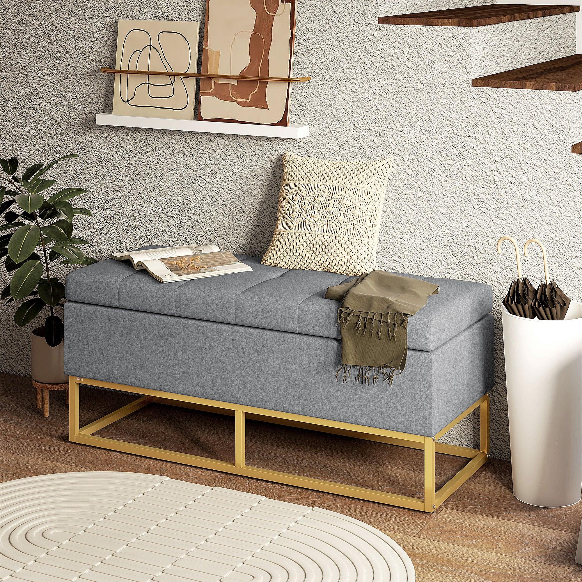 El banco de almacenamiento Otomana de la marca Homcom ofrece una combinación perfecta de funcionalidad y estilo para cualquier espacio de tu hogar. Su diseño elegante, con una estructura de tela transpirable de lino y patas metálicas doradas, añade un toque de sofisticación a tu dormitorio, pasillo o salón. No solo es un elemento decorativo, sino que también proporciona un amplio espacio de almacenamiento para mantener tus pertenencias organizadas. Convierte este banco en tu taburete de zapatos, banco de cama o banco de entrada, según tus necesidades. Su compartimento de almacenaje debajo del asiento y la tapa abatible con bisagras hacen que acceder a tus pertenencias sea fácil y conveniente. Además, el asiento acolchado y tapizado en tejido de poliéster con tacto de lino ofrece una superficie suave y cómoda para sentarse. Las patas de acero con recubrimiento en polvo proporcionan estabilidad y durabilidad, asegurando que este banco pueda soportar hasta 200 kg de peso. Su montaje es sencillo y rápido, permitiéndote disfrutar rápidamente de este práctico y elegante mueble en tu hogar.