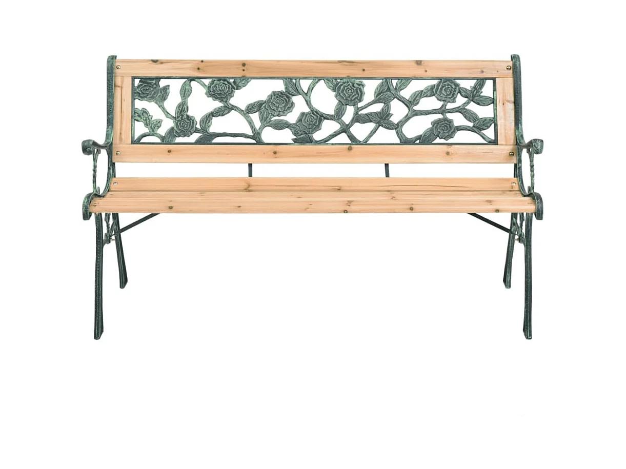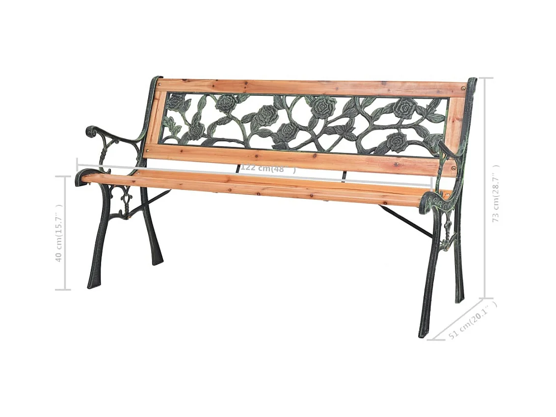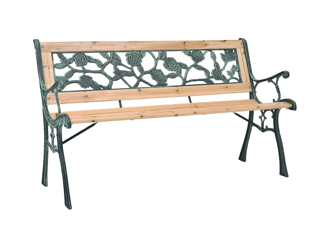 Banco de jardín de 122 cm de hierro fundido y madera maciza de abeto.