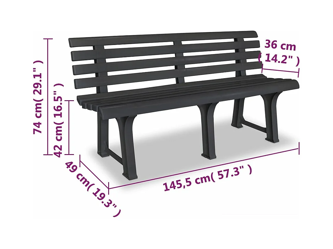 Banco de jardín HDPE gris aspecto madera 120 cm