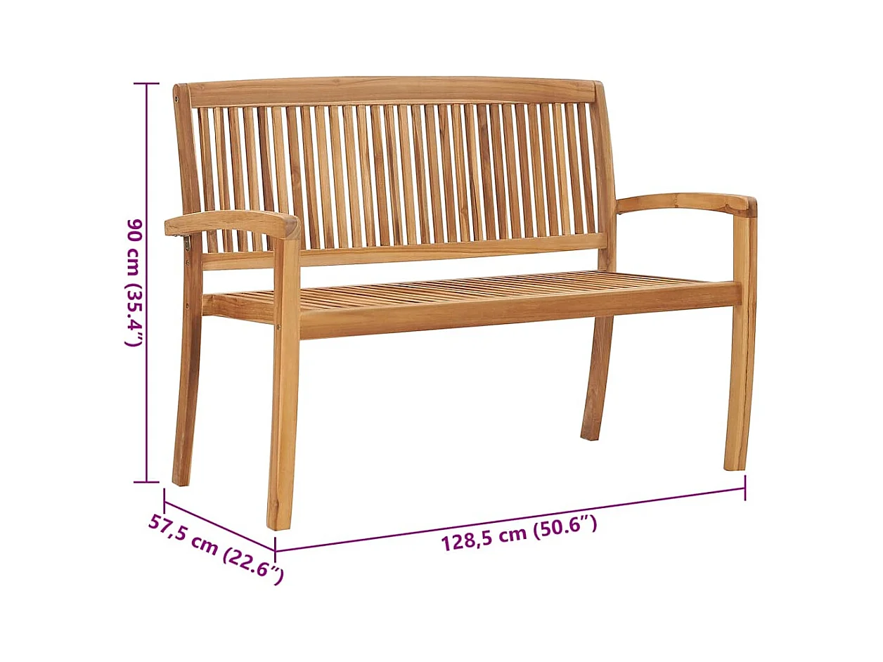 Banco de jardín apilable y cojín madera maciza de teca 128,5 cm