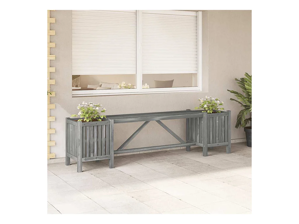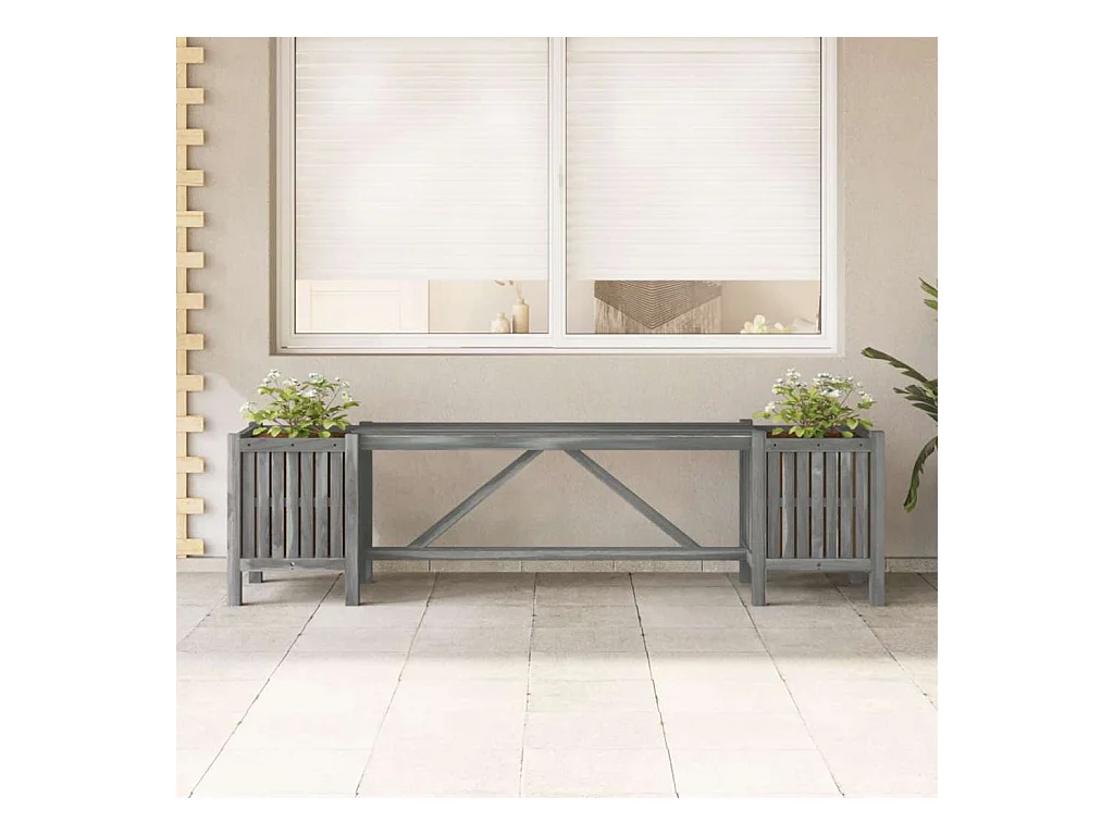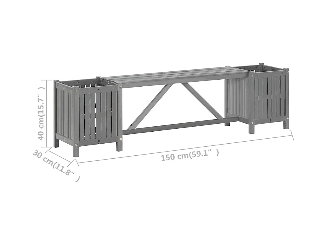 Banco de jardín con 2 jardineras 150 cm madera de acacia gris