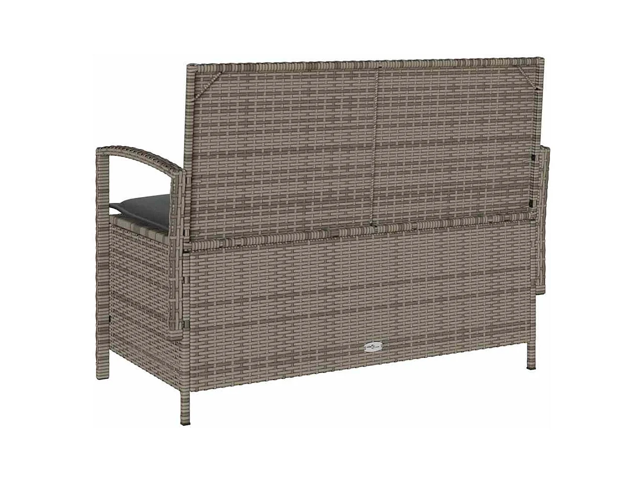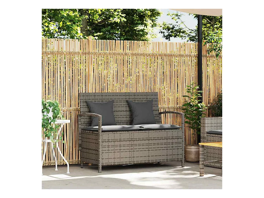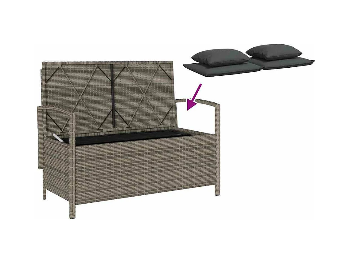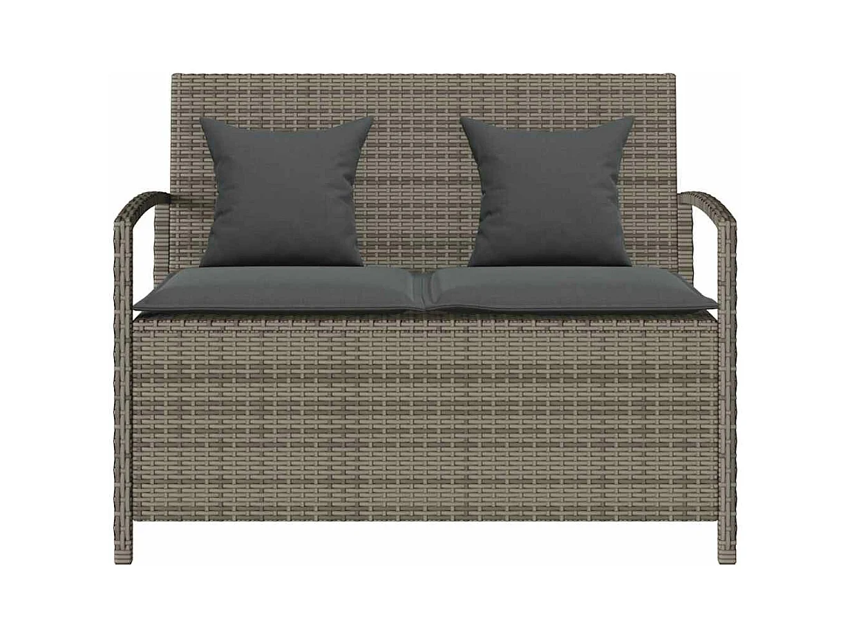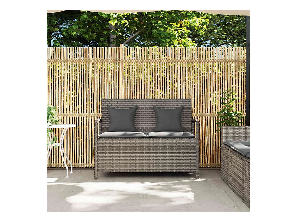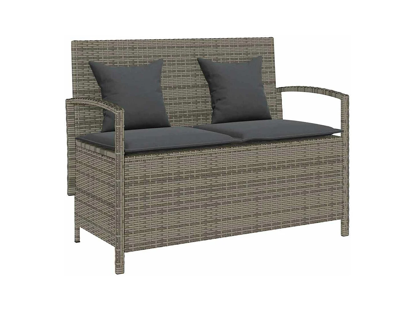 Banco de jardín con almacenaje y cojín gris ratán sintético