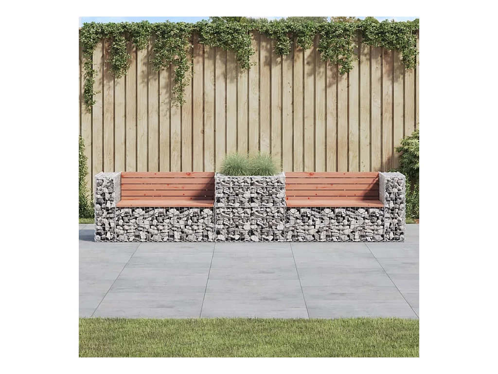 Banco de jardín de diseño de gaviones 347x71x65,5 cm de madera maciza de abeto Douglas