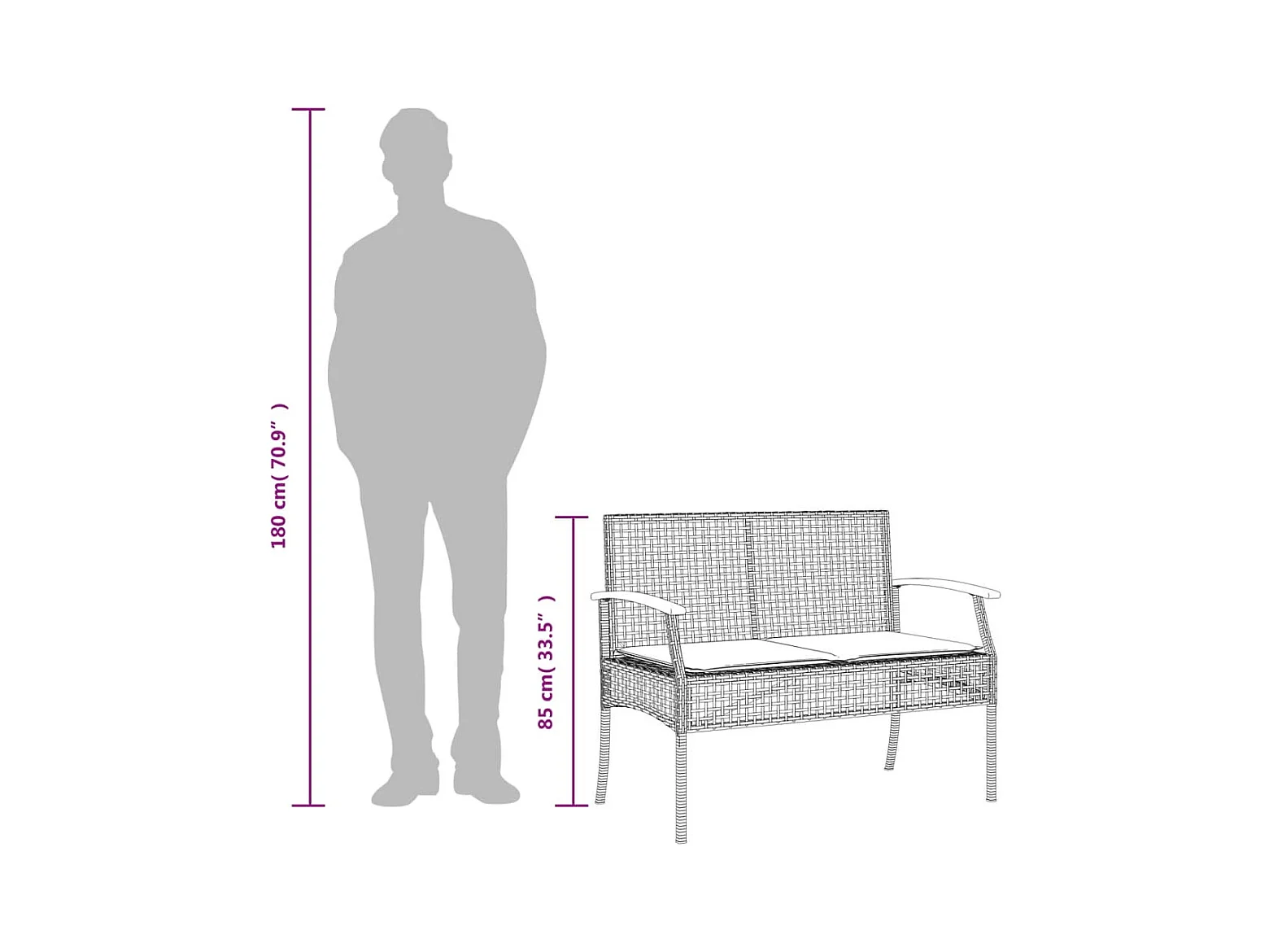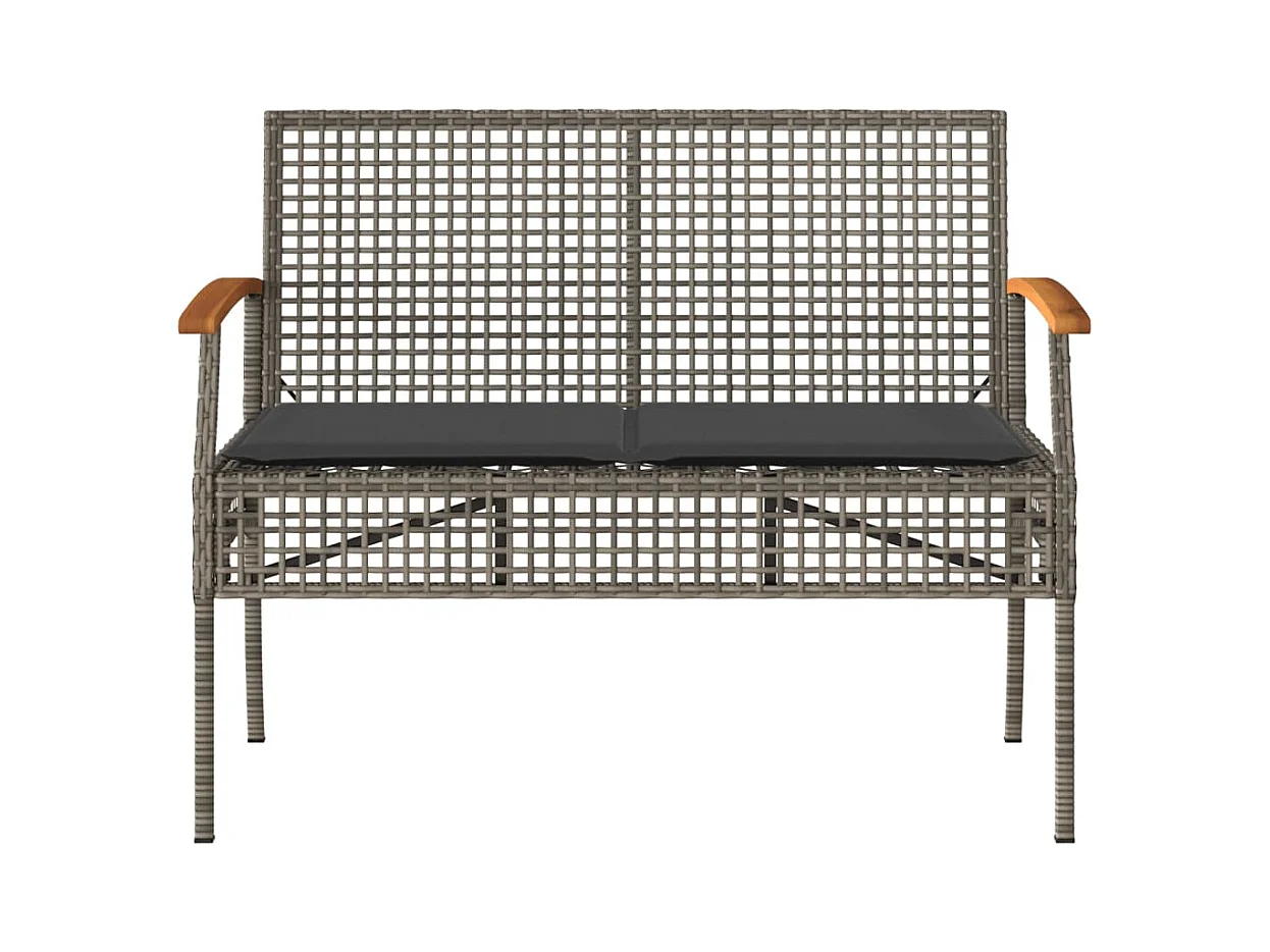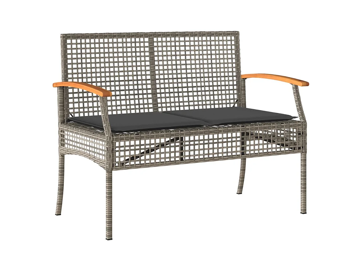 Banco de jardín de 2 plazas con cojines de mimbre gris