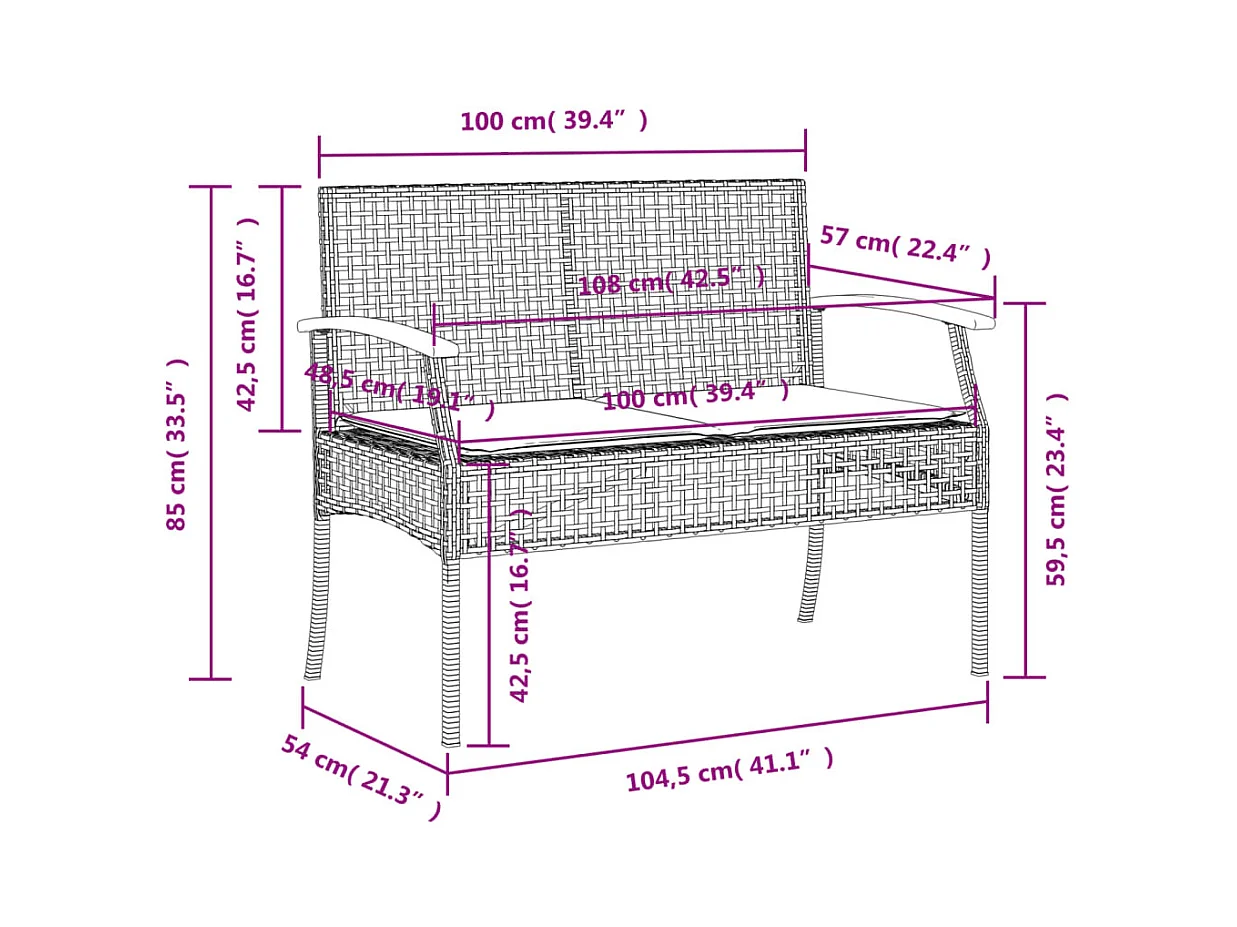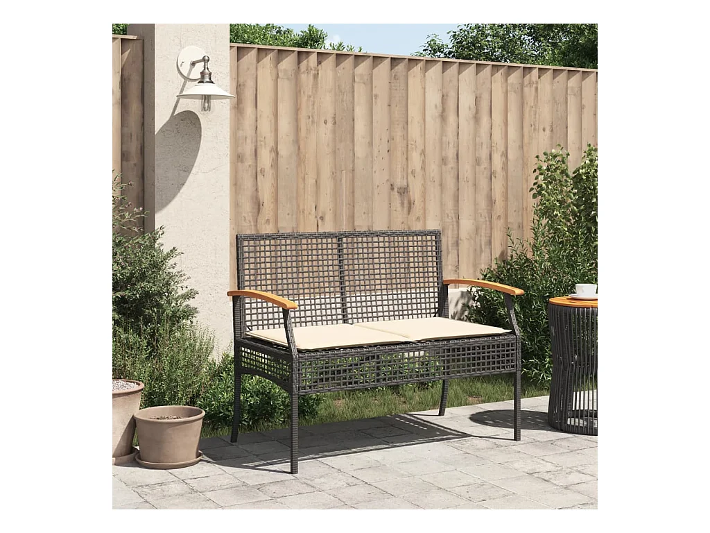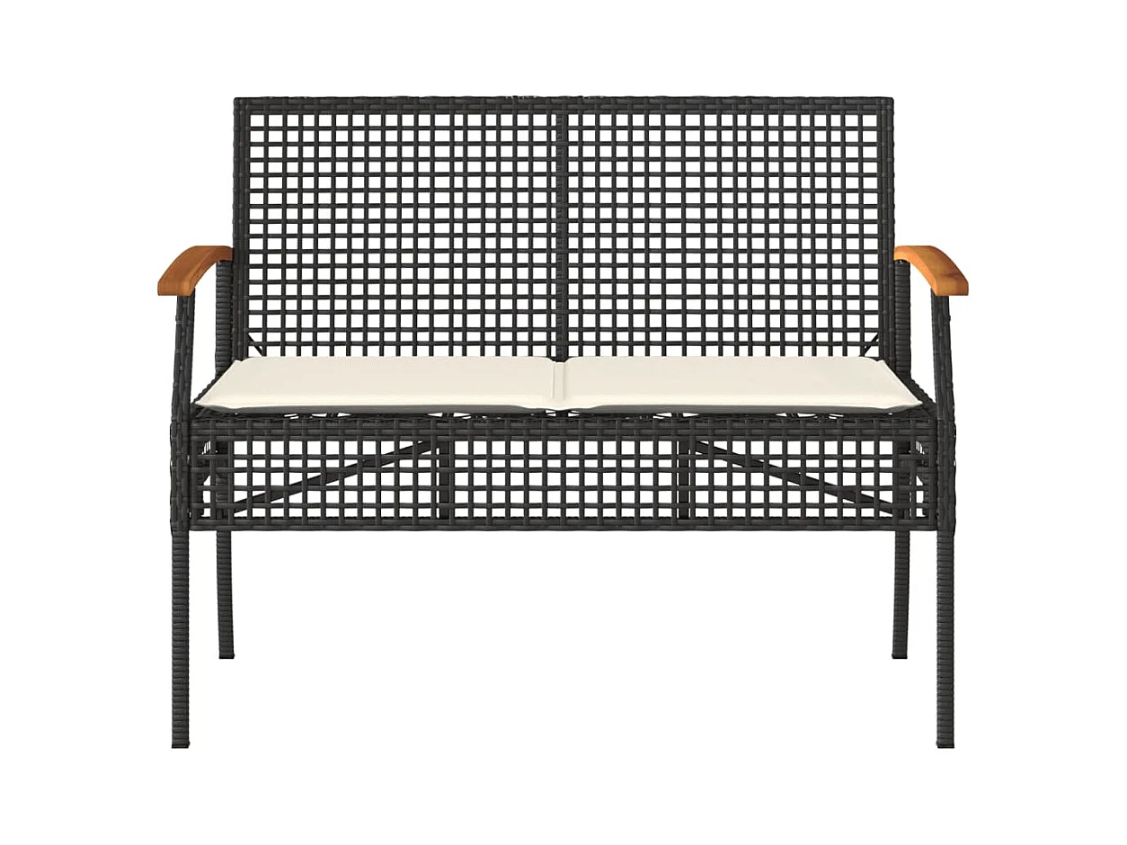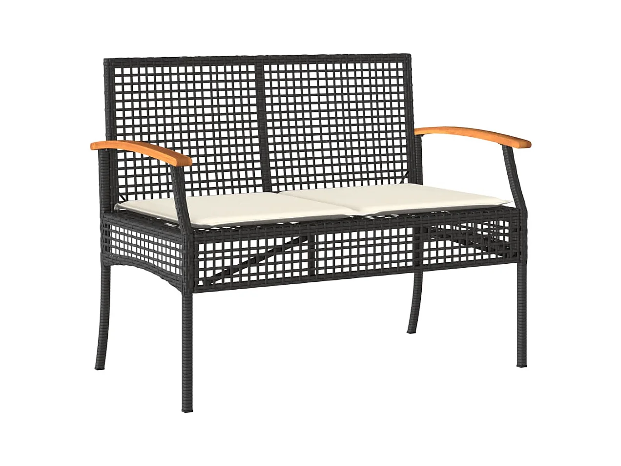Banco de jardín de 2 plazas con cojines de mimbre negro