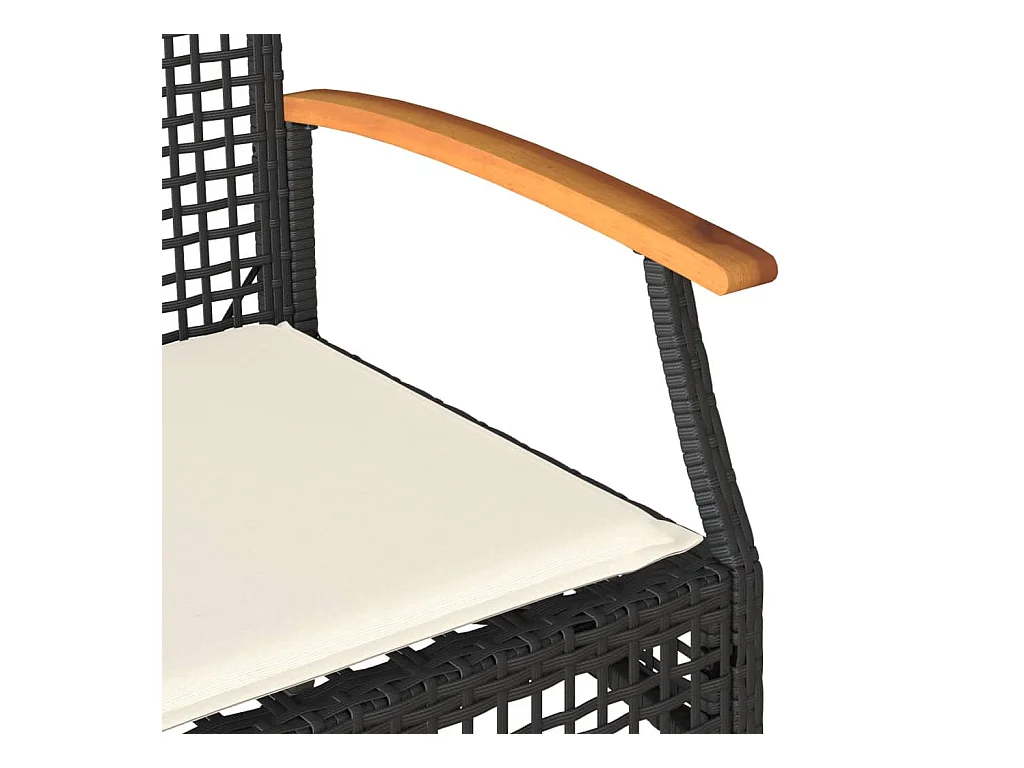 Banco de jardín con cojín negro de resina trenzada y acacia.