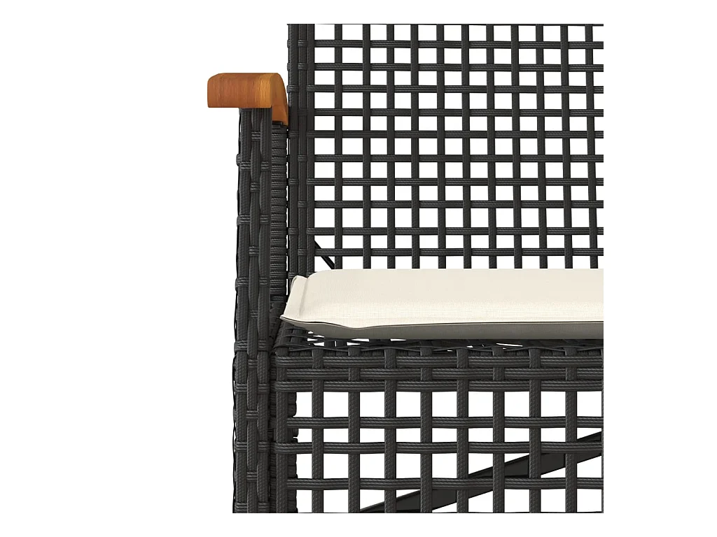Banco de jardín reclinable con cojines de mimbre de resina negra