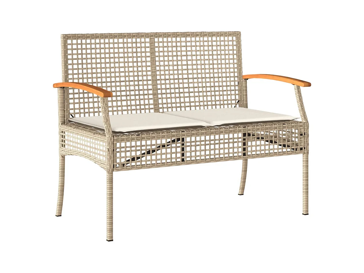 Banco de jardín con cojín ratán sintético beige y madera acacia