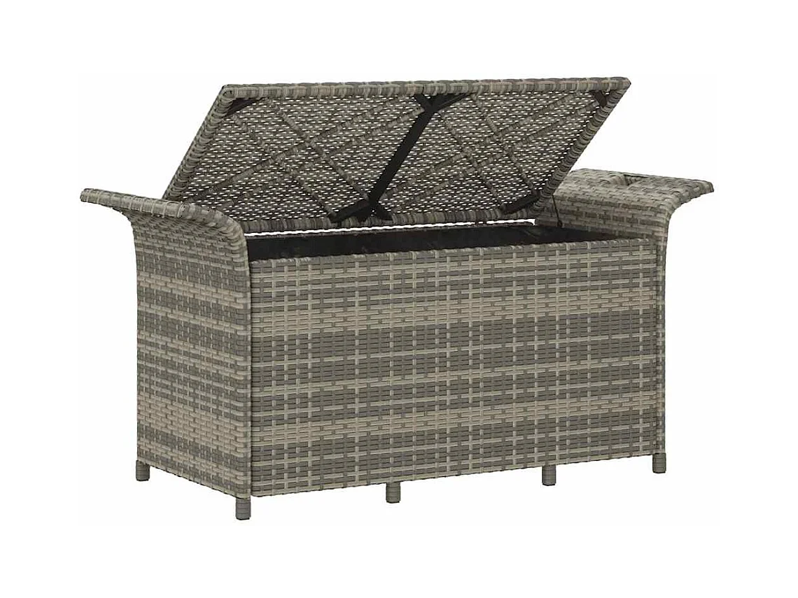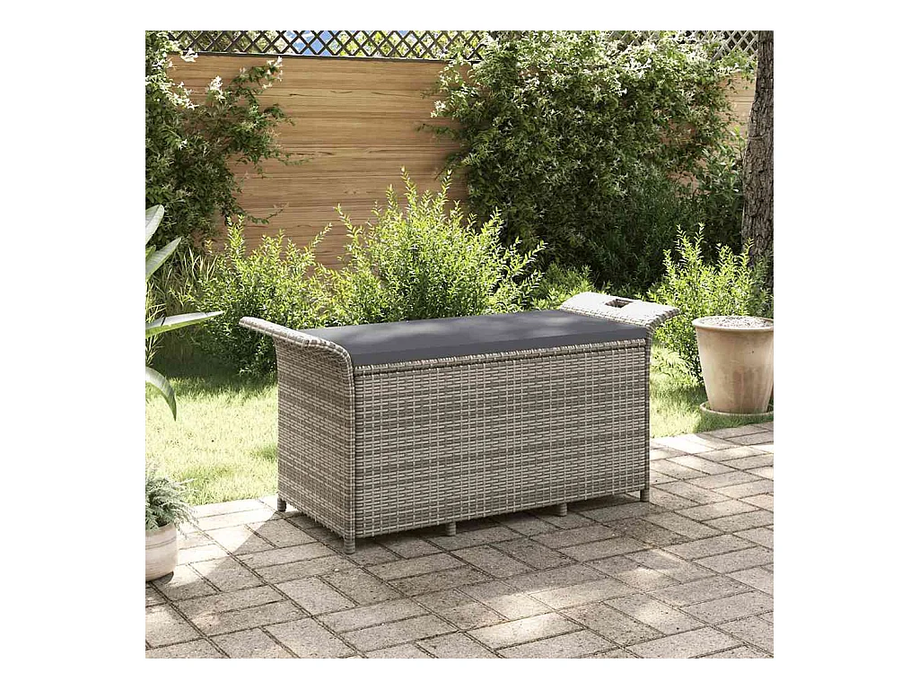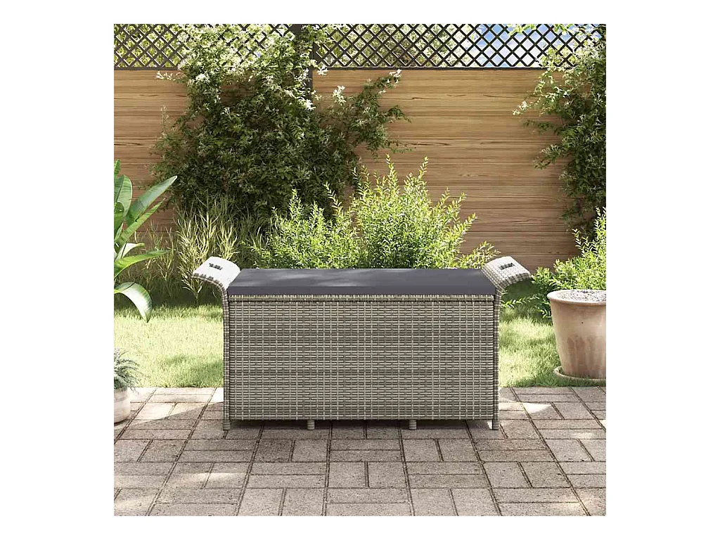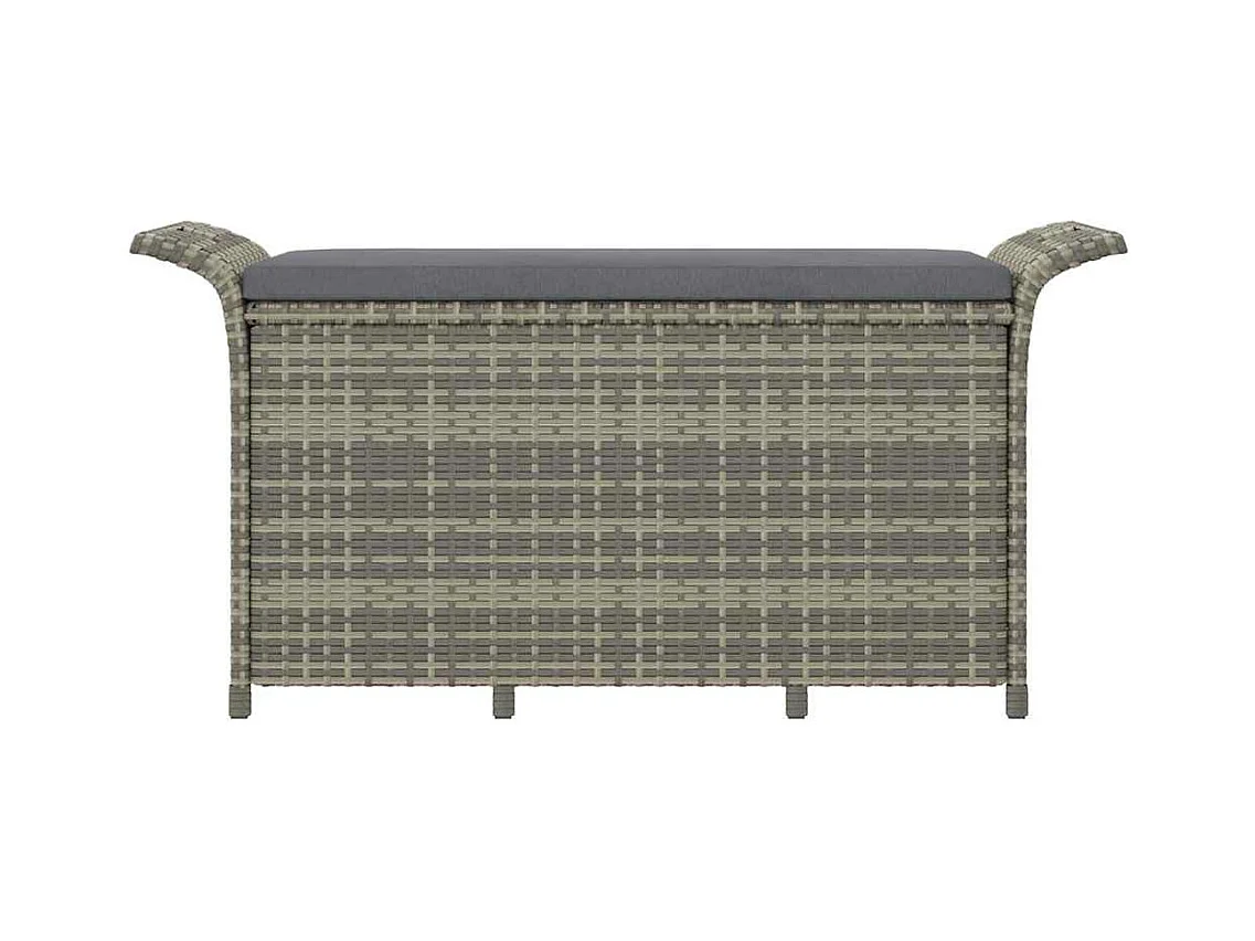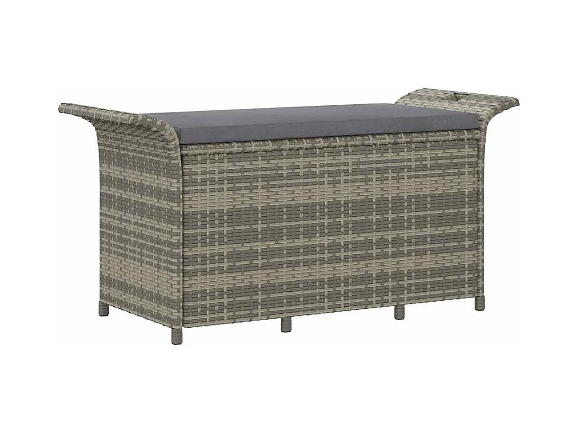 Banco de jardín con almacenaje y cojín gris ratán sintético
