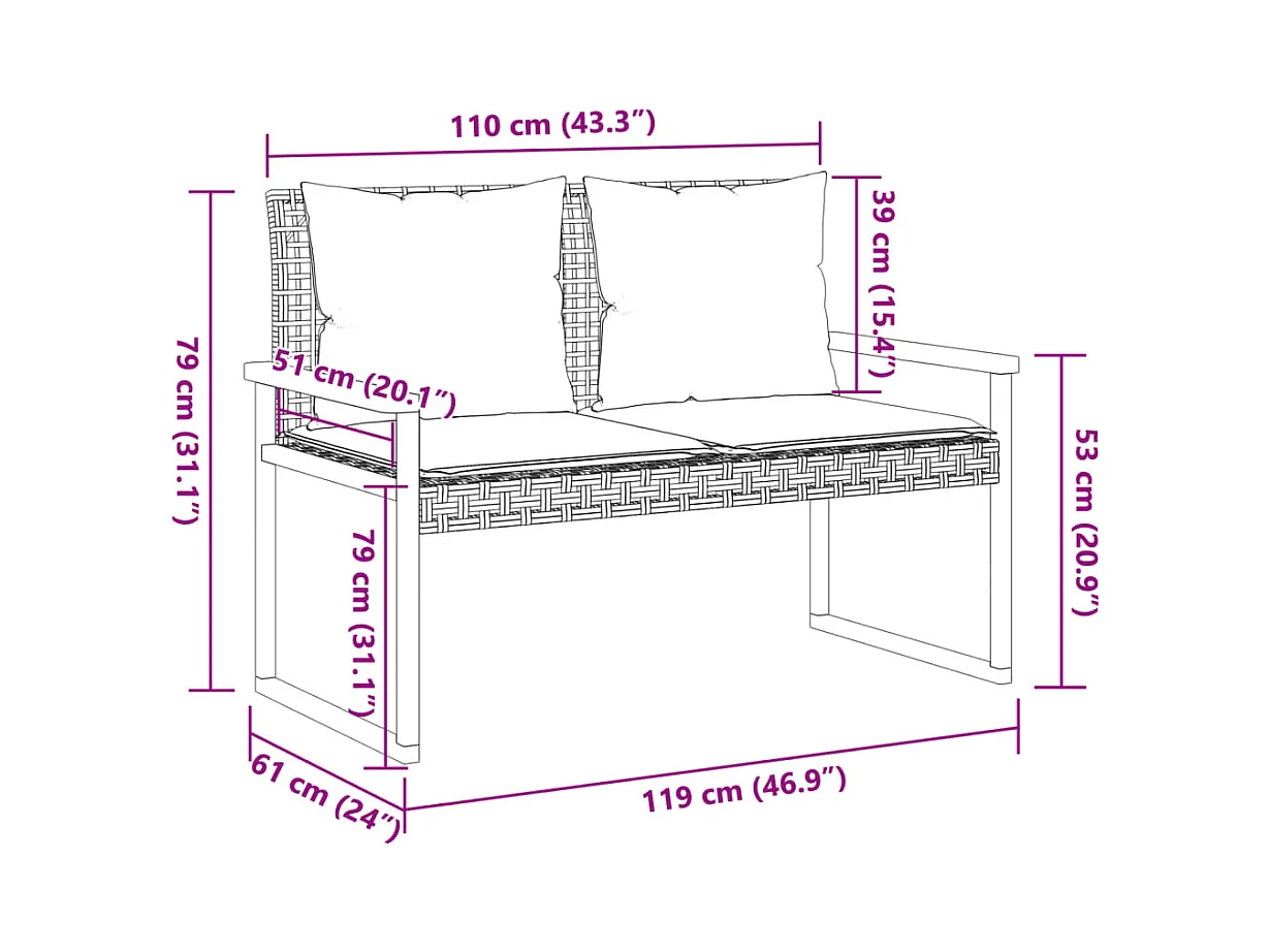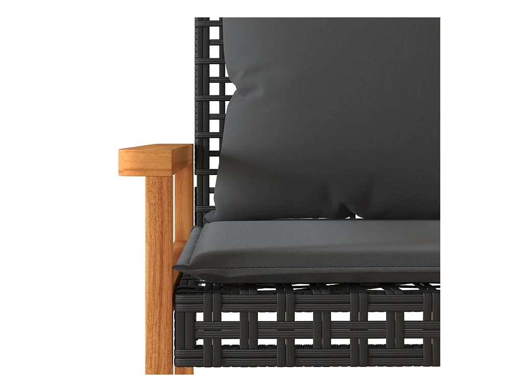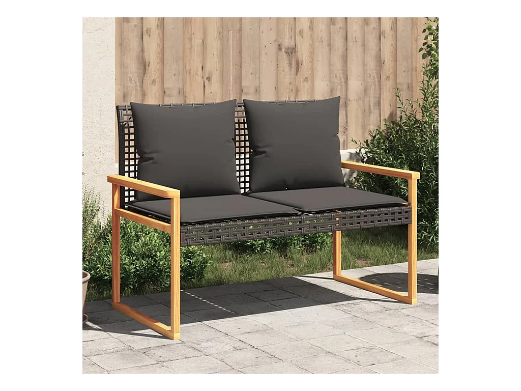 Banco de jardín con cojín ratán sintético negro y madera acacia