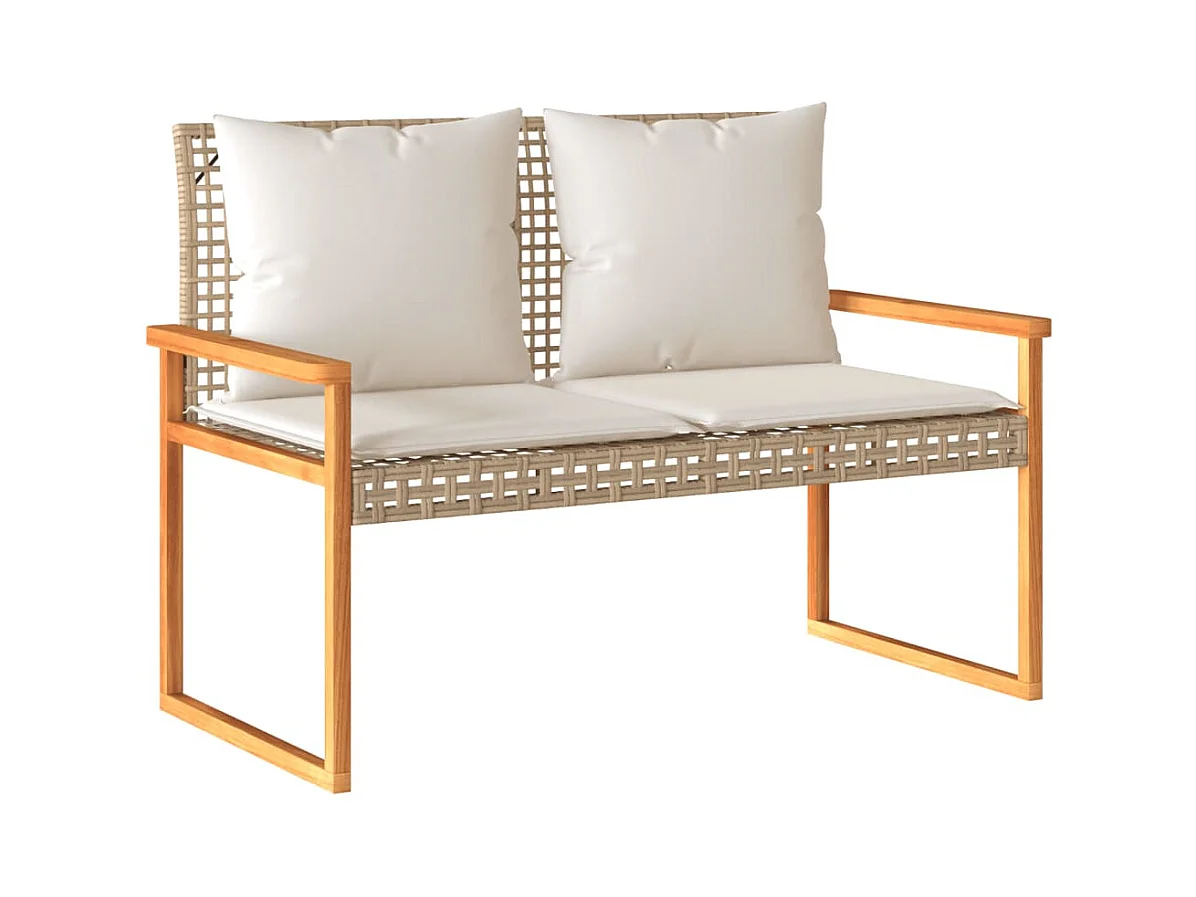 Banco de jardín con cojín resina tejida de acacia mezcla beige