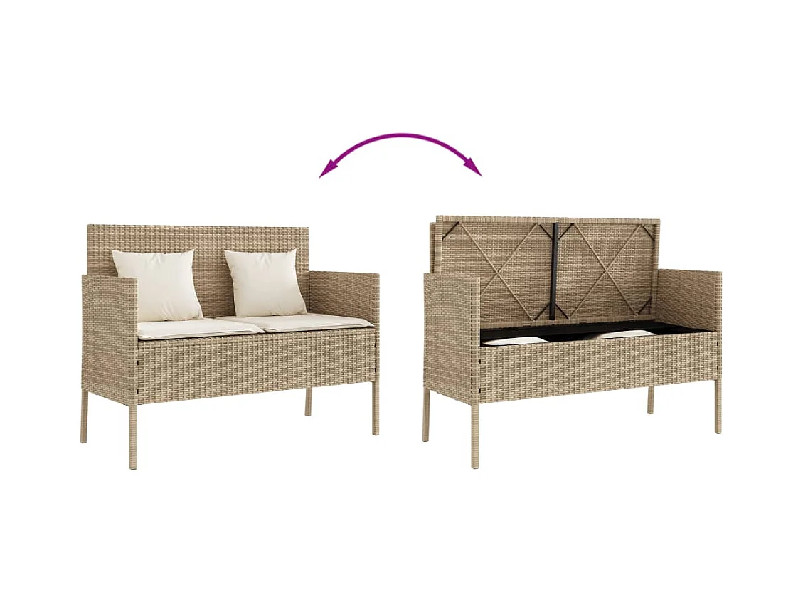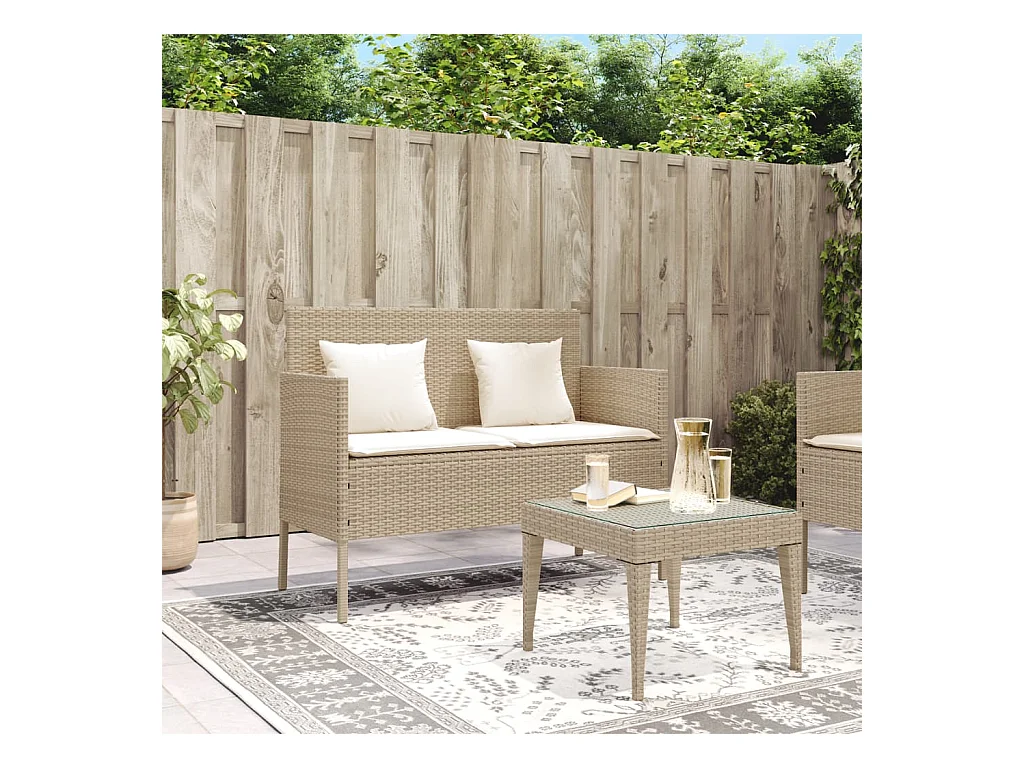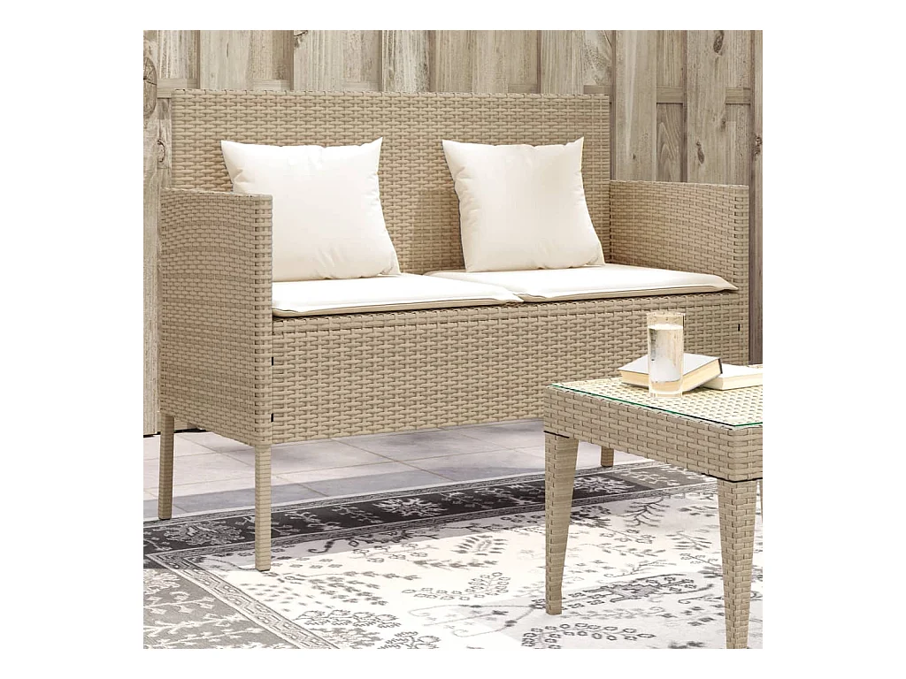 Banco de jardín con cojines ratán sintético beige