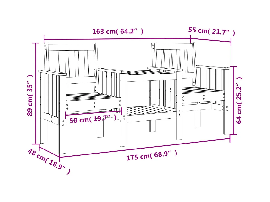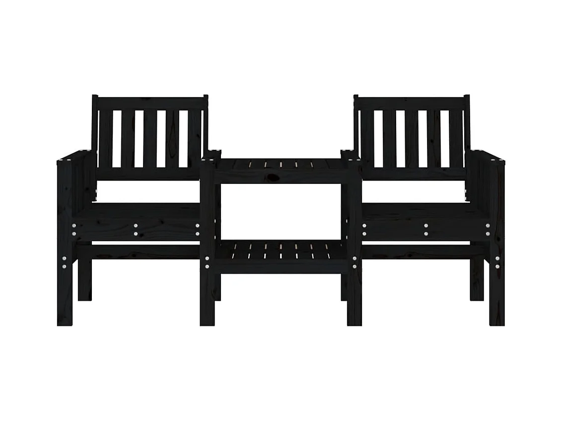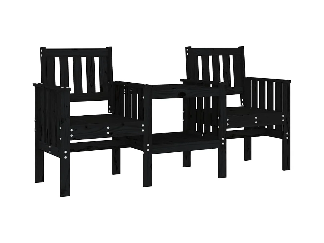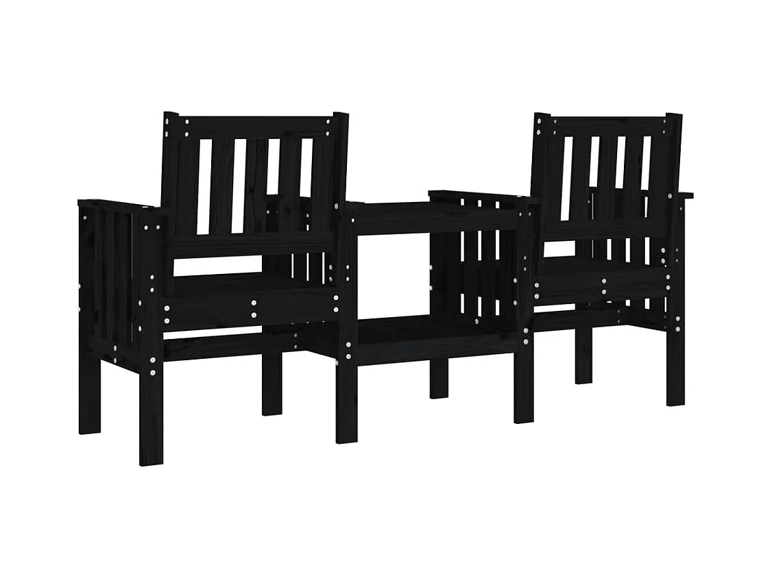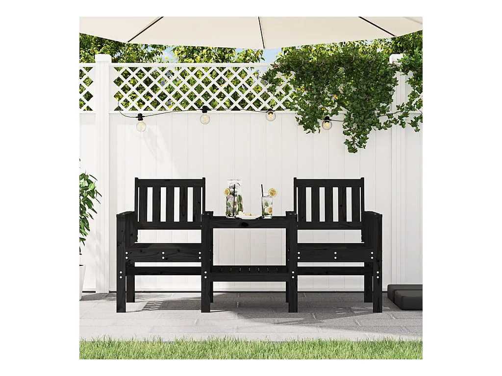 Banco de jardín con mesa de 2 plazas negra en madera maciza de pino