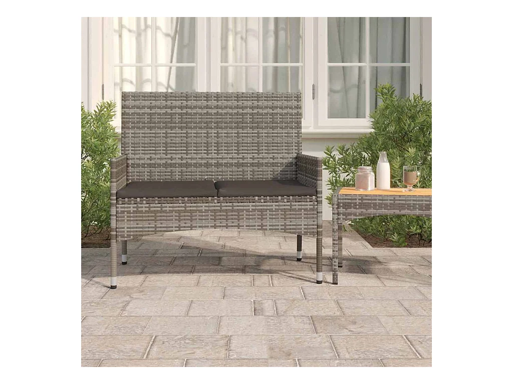 Banco de jardín de 2 plazas con cojines de mimbre gris