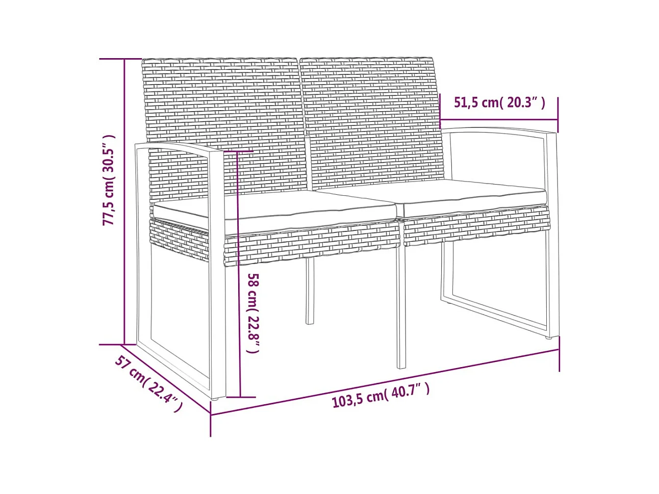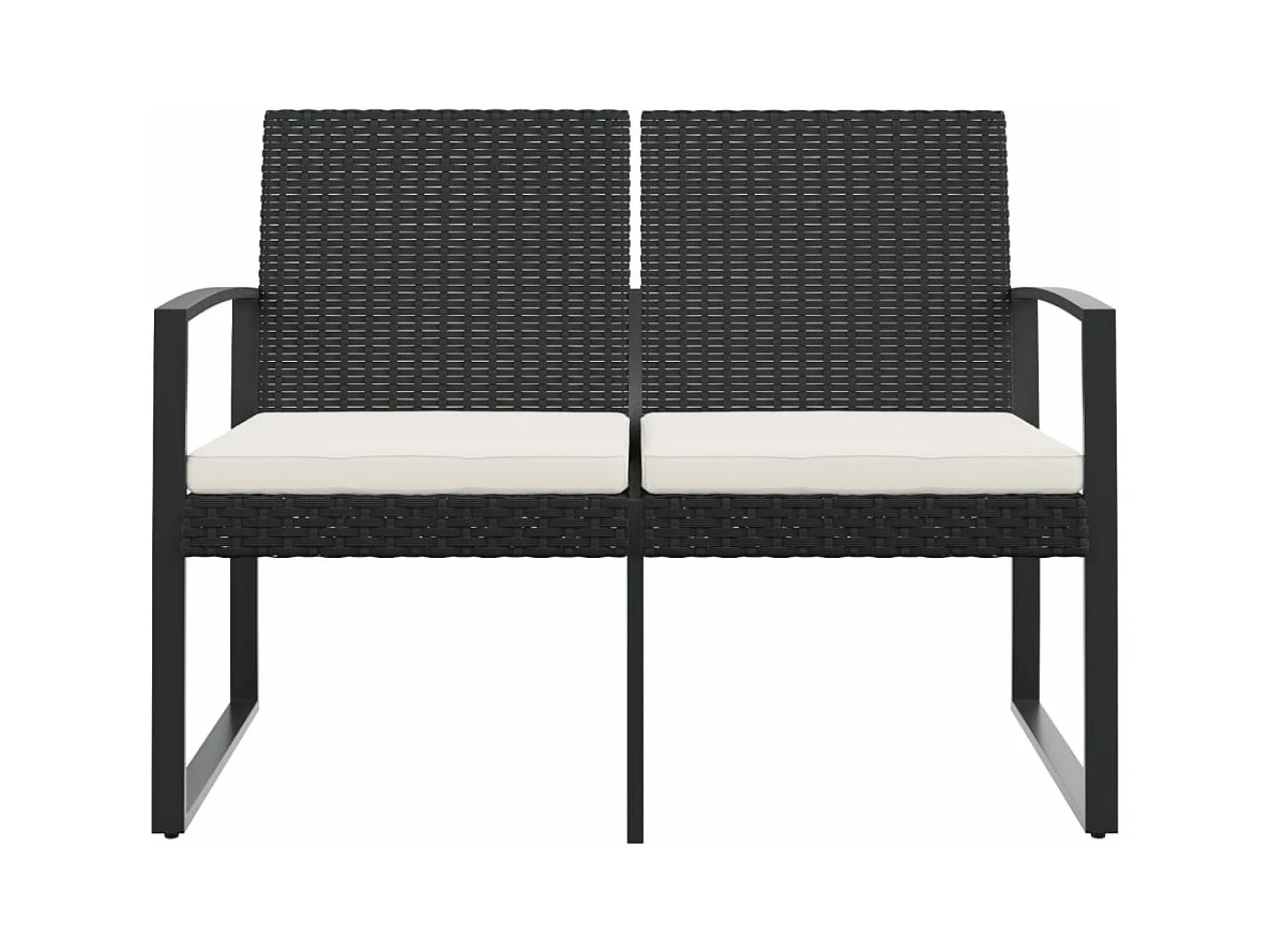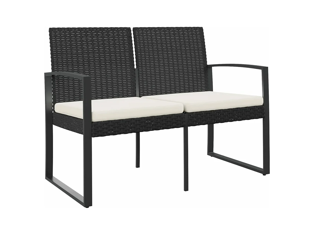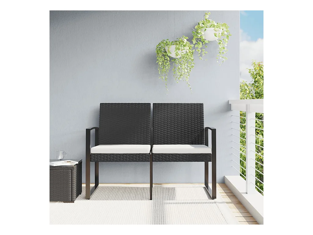 Banco de jardín de 2 plazas con cojines de ratán PP negro