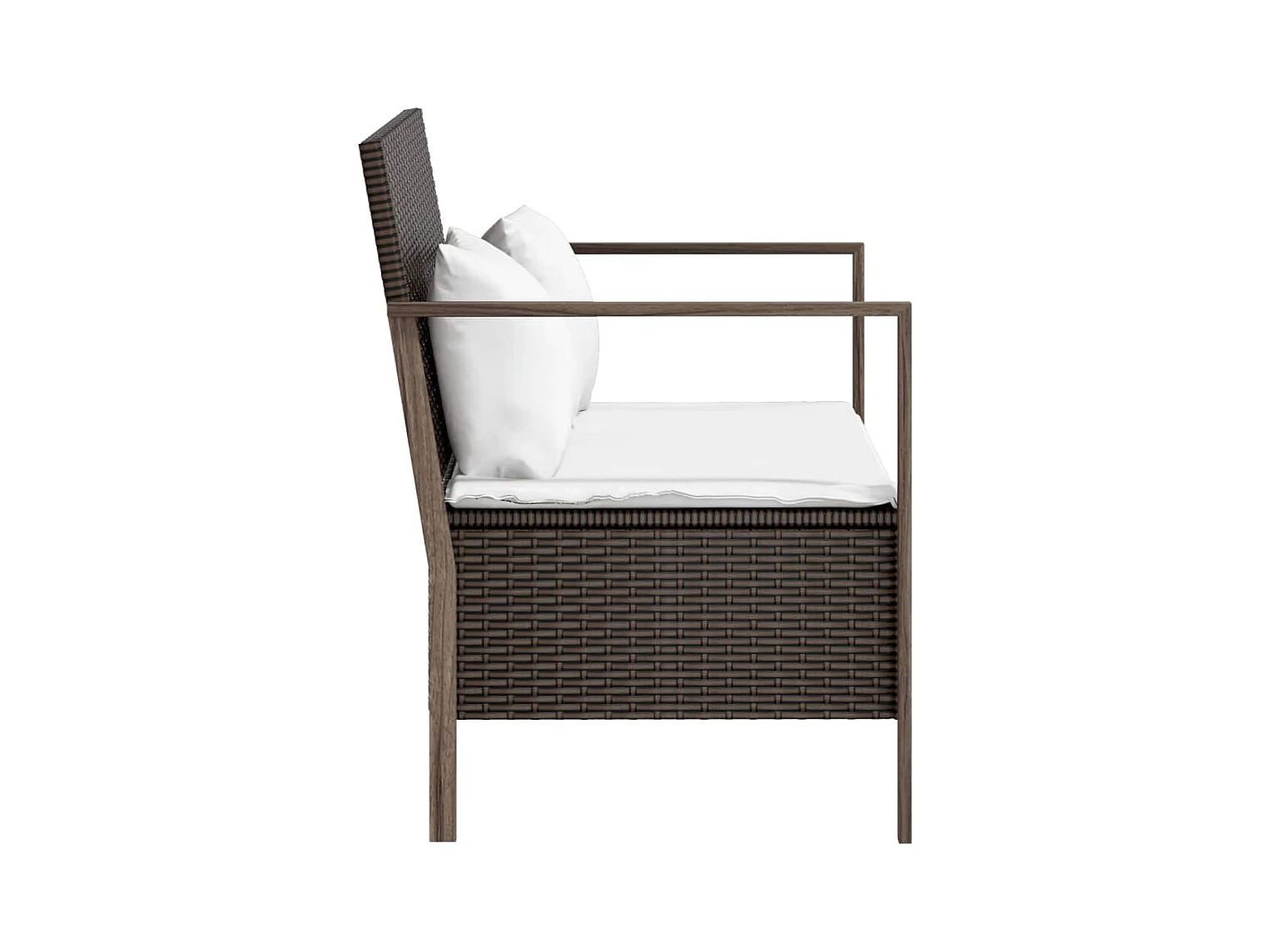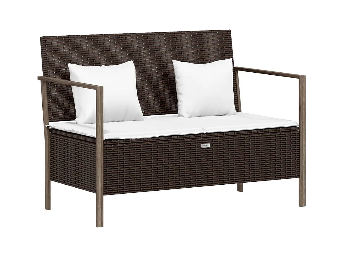Banco de jardín de 2 plazas con cojines ratán sintético marrón ES56207
