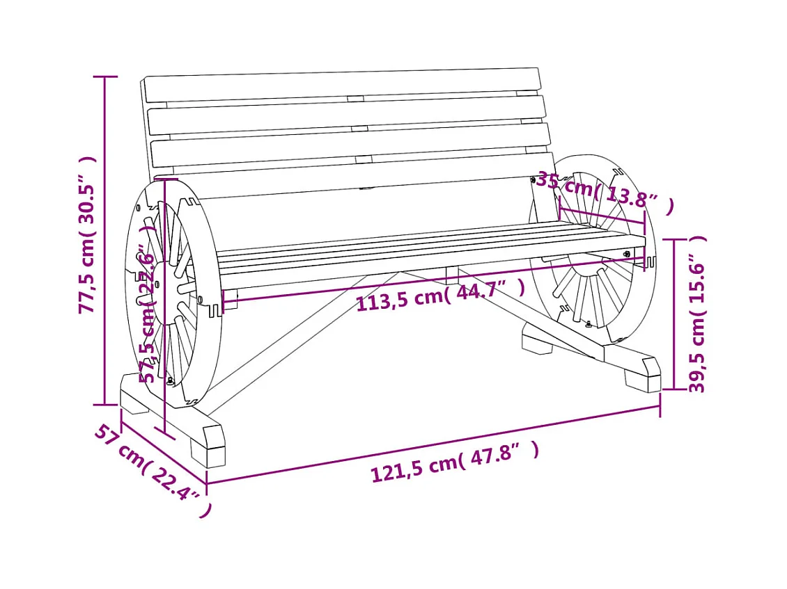 Banco de jardín de 2 plazas de madera maciza de abeto