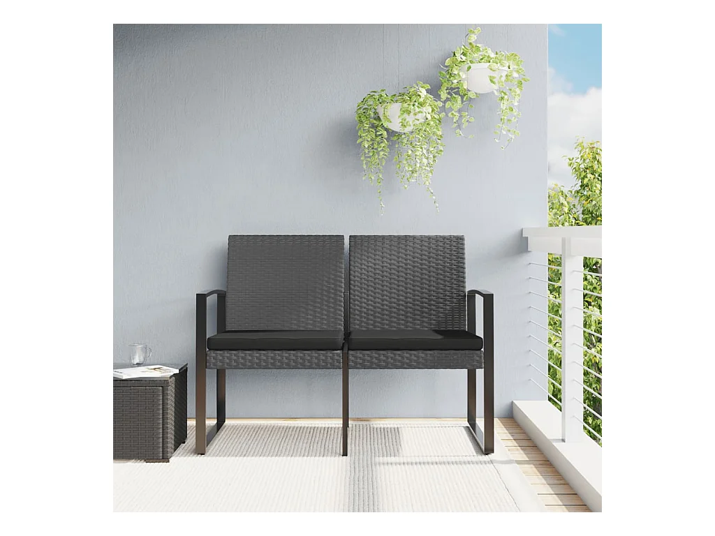 Banco de jardín de 2 plazas y cojines de ratán PP gris oscuro