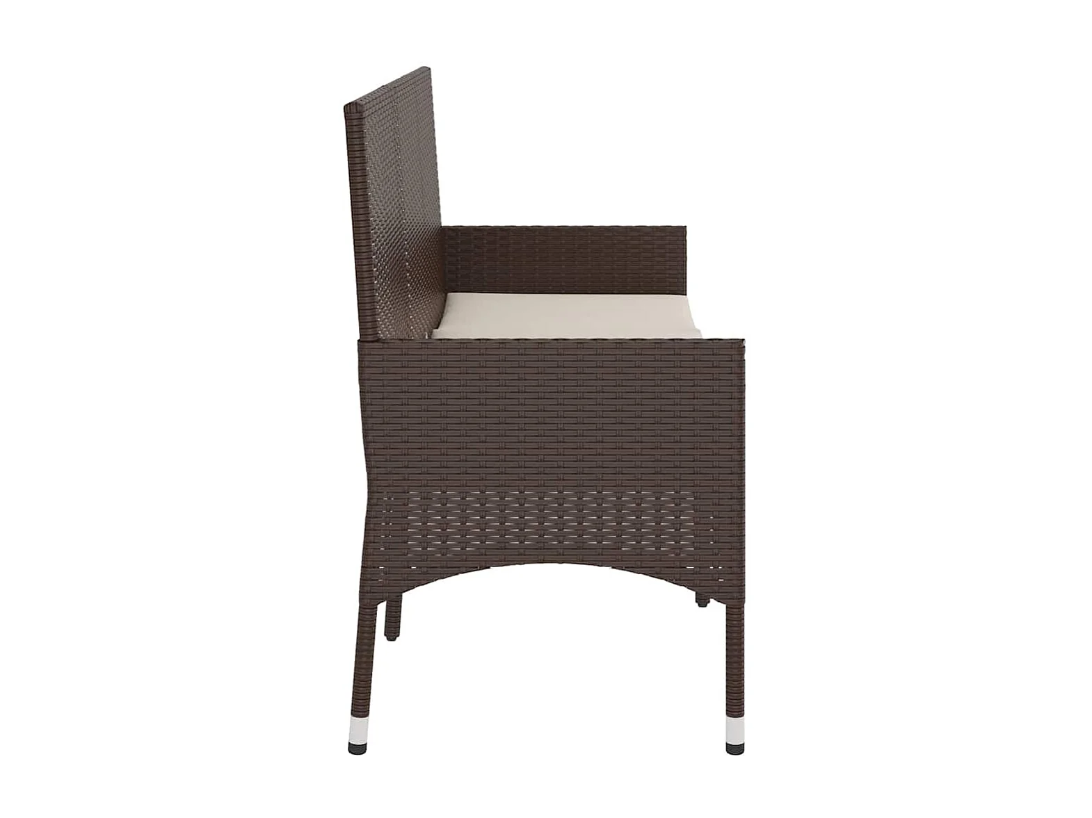 Banco de jardín de 3 plazas con cojines ratán sintético marrón