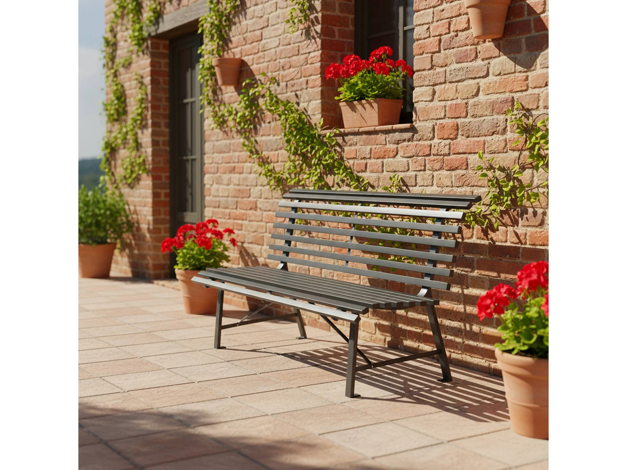 Banco de jardín Muebles de exterior para terraza terraza 2 plazas 104 x 52 x 78 cm acero negro 02_0011278