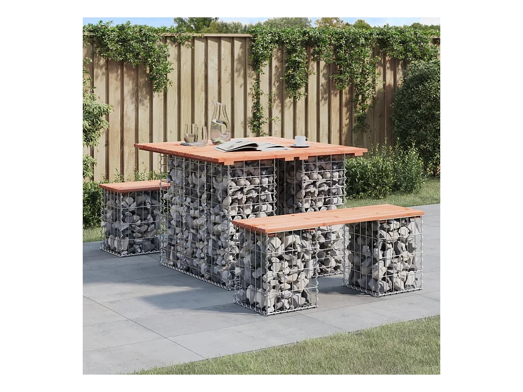 Banco de jardín de diseño de gaviones 100x102x72 cm de madera maciza de abeto Douglas