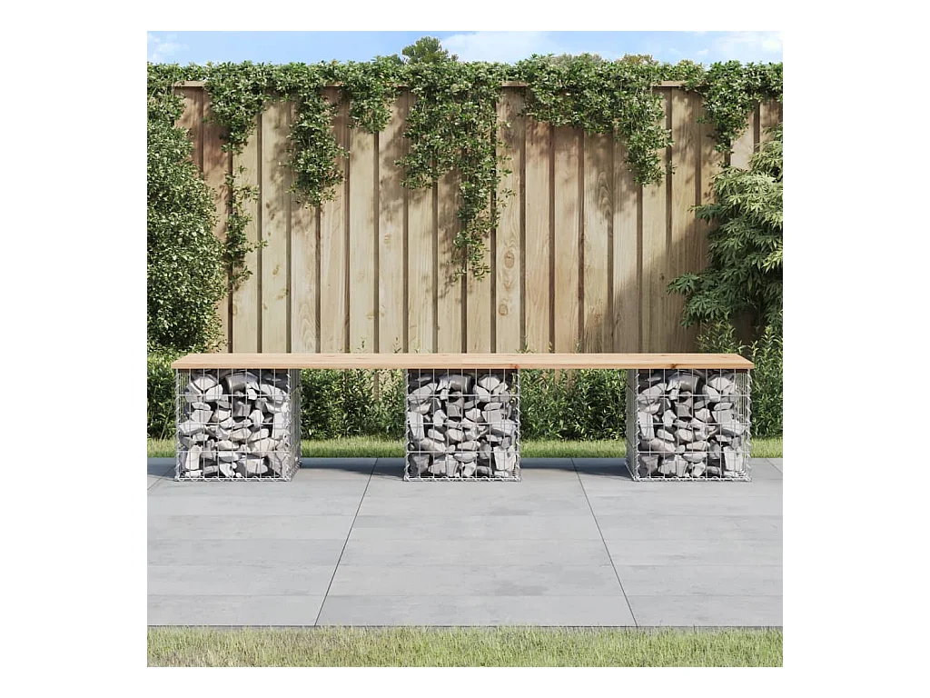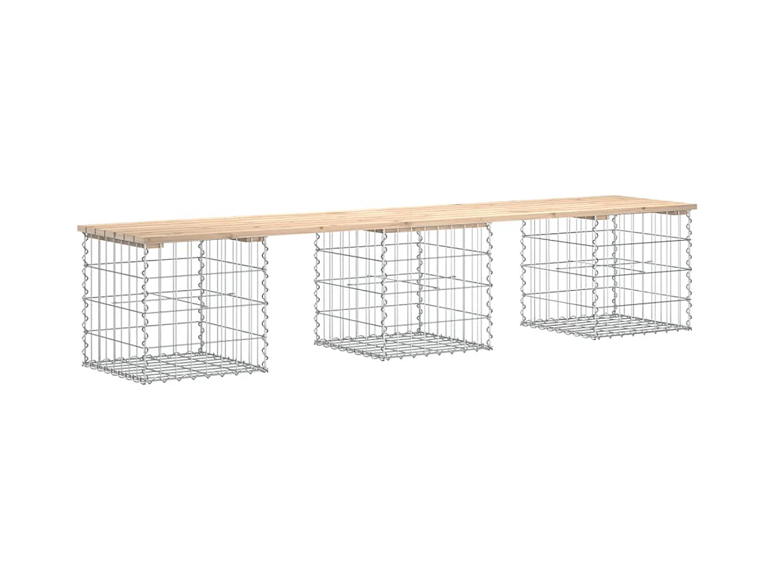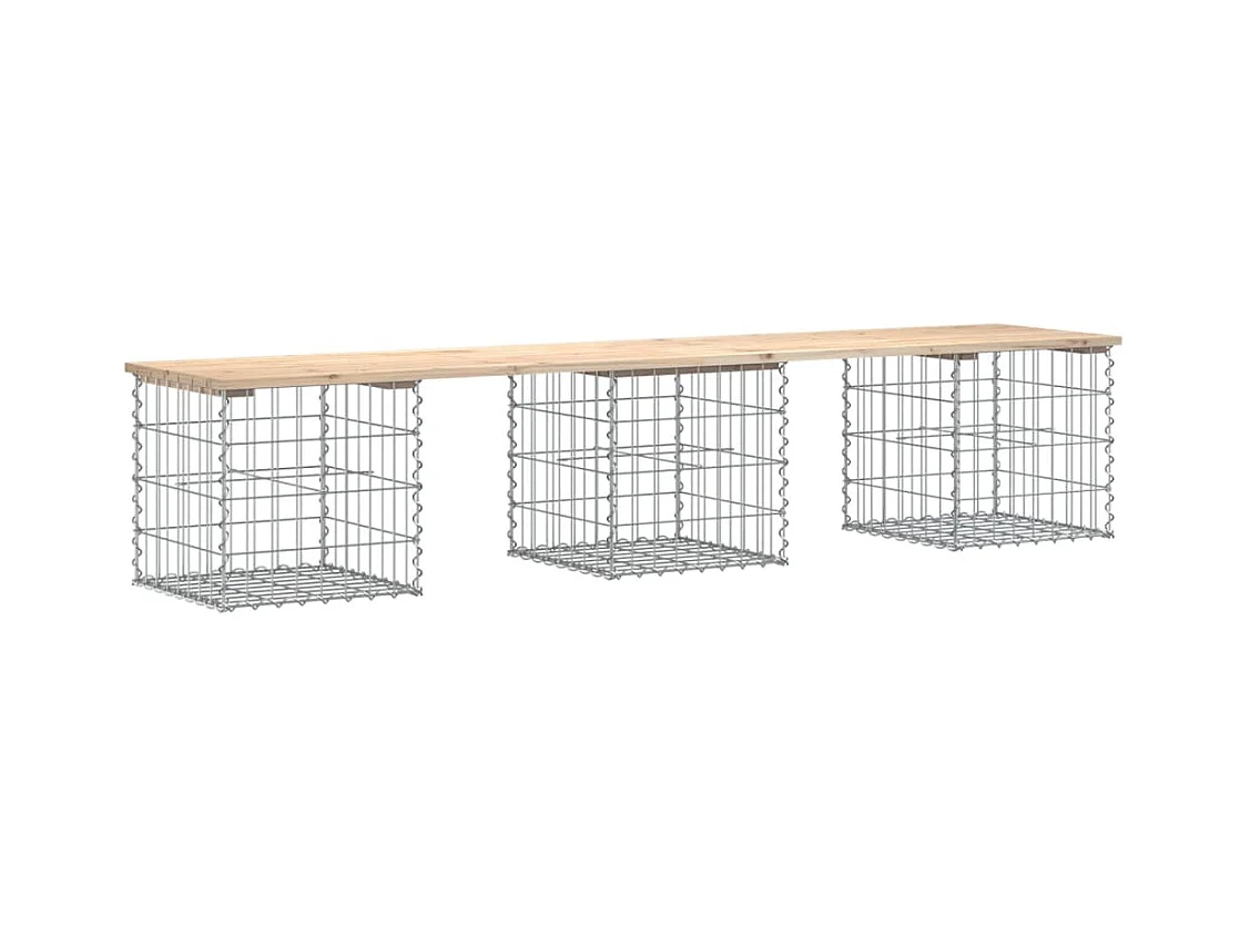 Banco de jardín de diseño en gavión 203x31x42 cm madera de pino impregnada