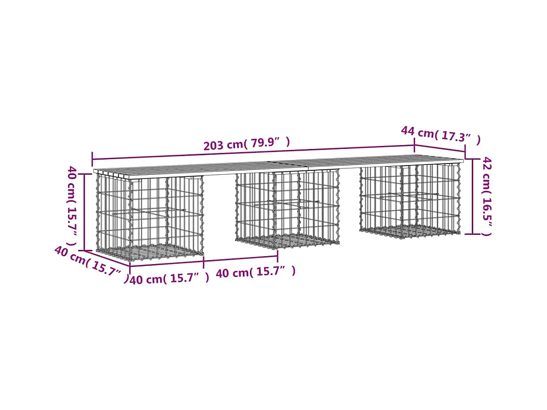 Banco de jardín de diseño de gaviones 203x44x42 cm madera maciza de pino
