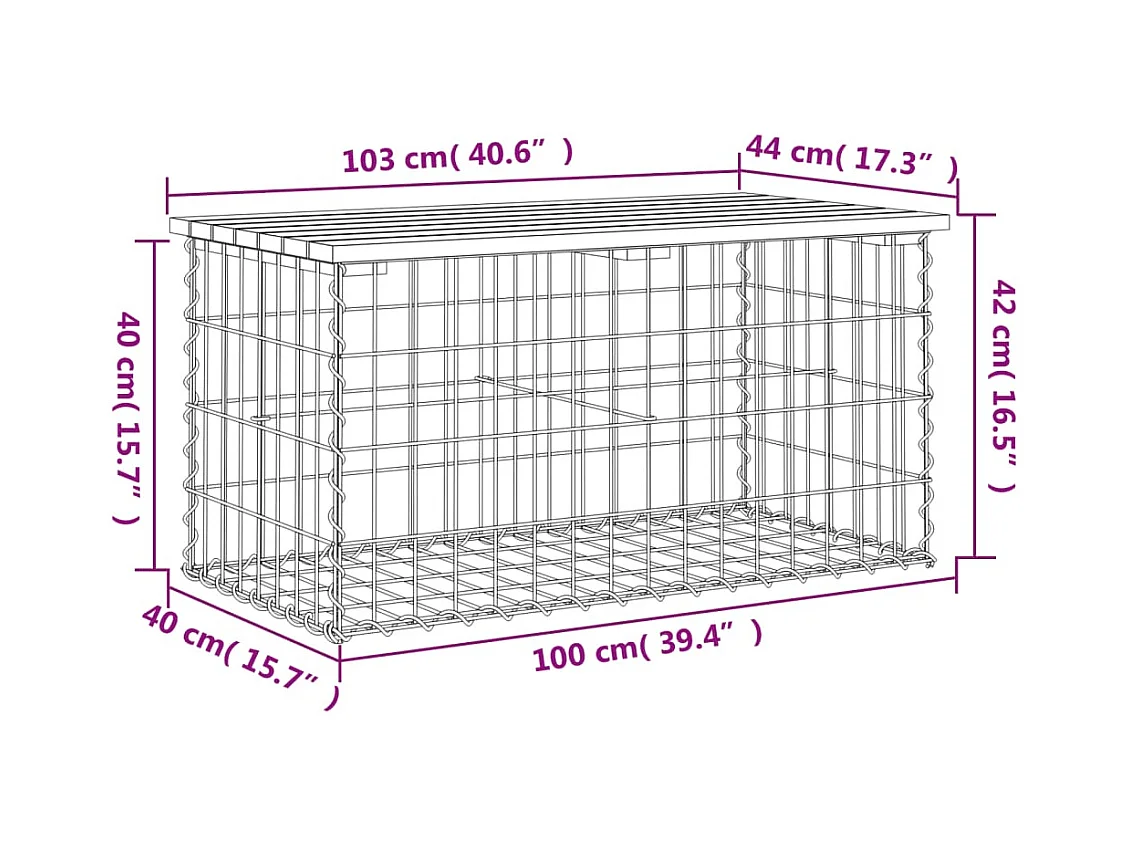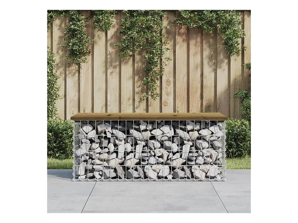 Banco de jardín de diseño en gavión 103x44x42 cm madera de pino impregnada