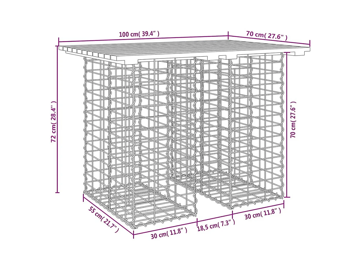 Banco de jardín de diseño gavión 100x70x72 cm madera maciza de pino