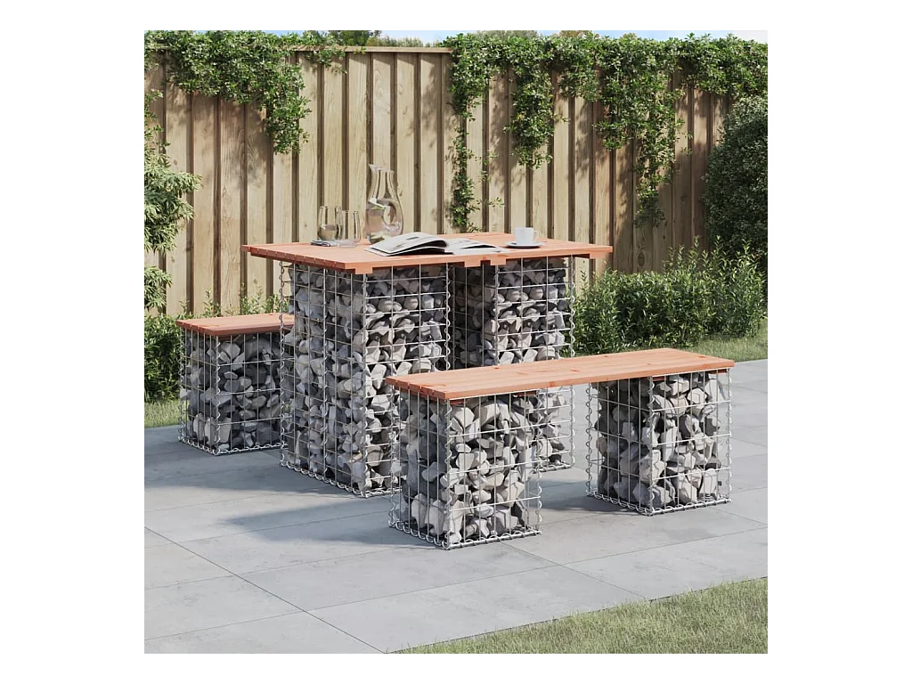 Banco de jardín de diseño de gaviones 100x102x72 cm de madera maciza de abeto Douglas