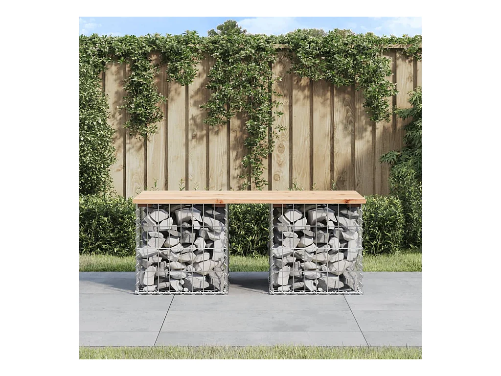 Banco de jardín de diseño gavión 103x44x42cm madera maciza de abeto Douglas