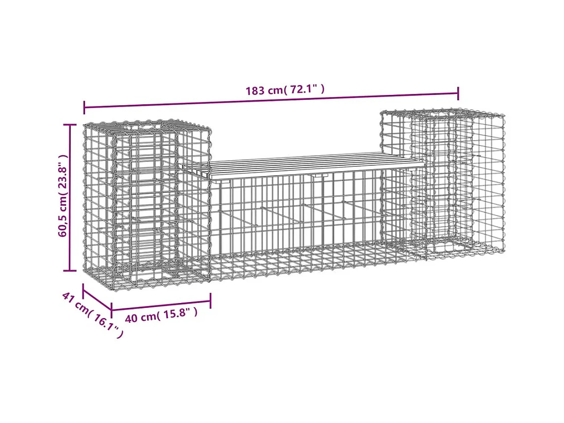 Banco de jardín de diseño de gaviones 183x41x60,5cm madera de pino impregnada