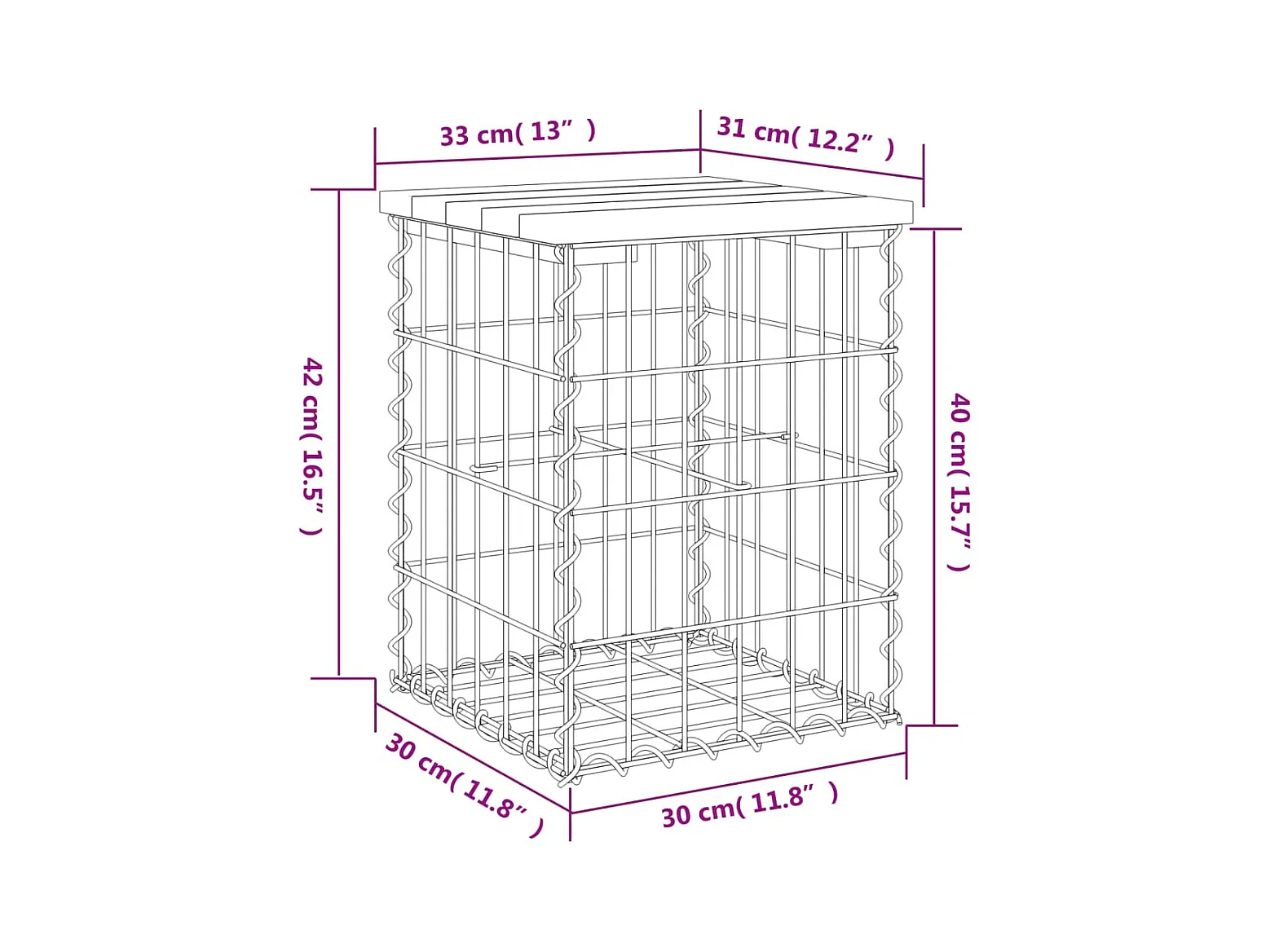Banco de jardín de diseño gavión 33x31x42 cm madera maciza de pino