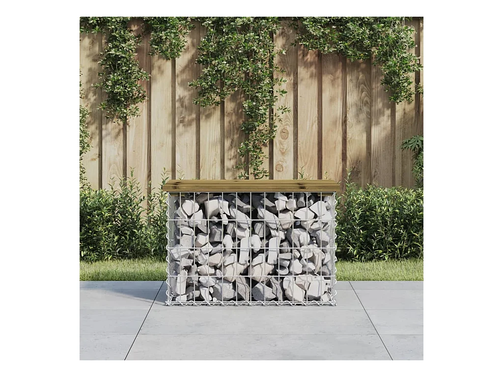 Banco de jardín de diseño de gaviones 103x31,5x42cm madera de pino impregnada