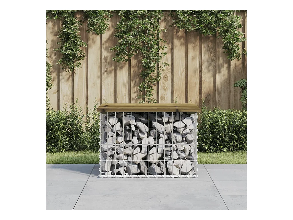 Banco de jardín de diseño en gavión 103x44x42 cm madera de pino impregnada