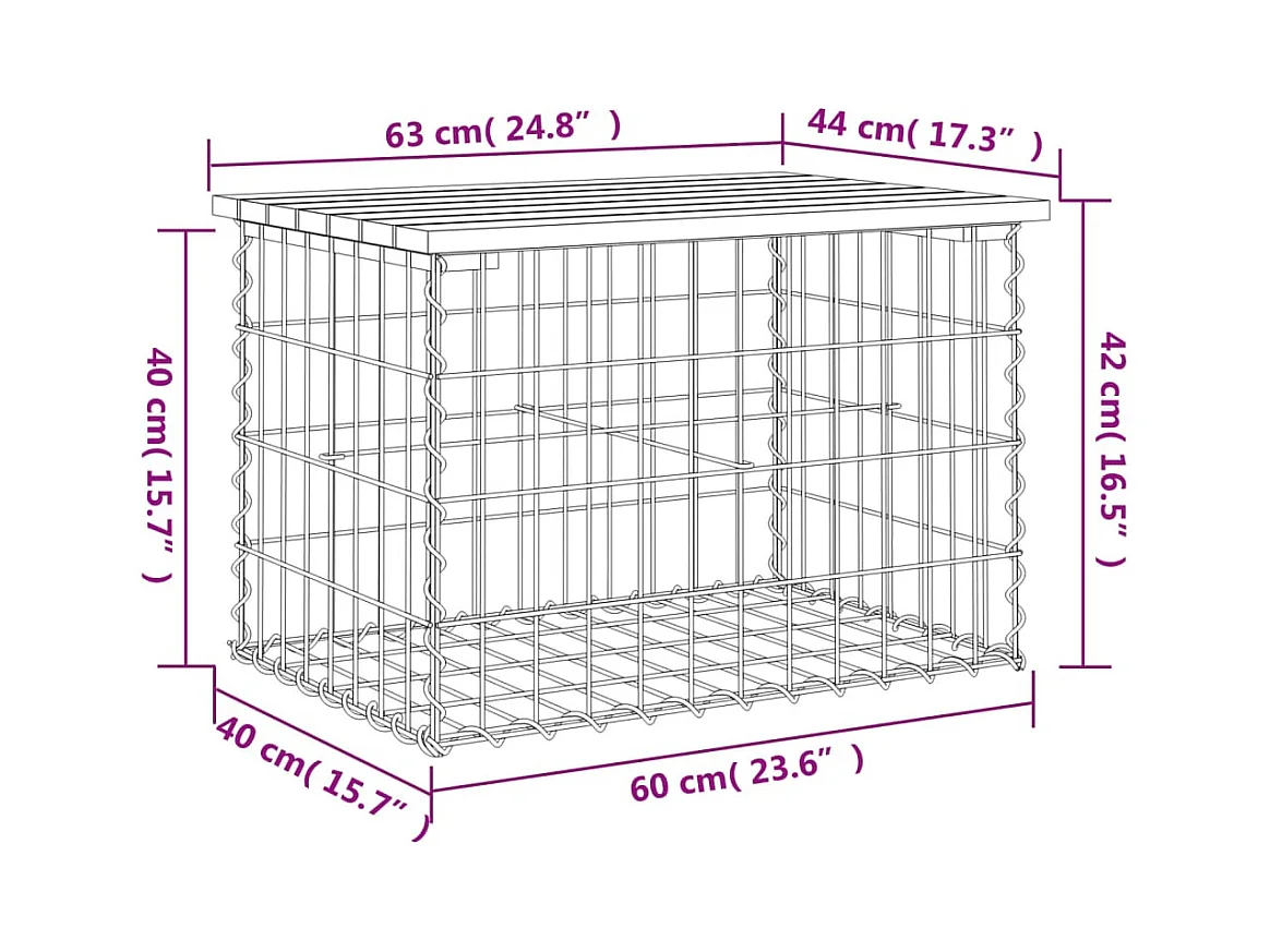 Banco de jardín de diseño de gaviones 63x44x42 cm madera maciza de pino