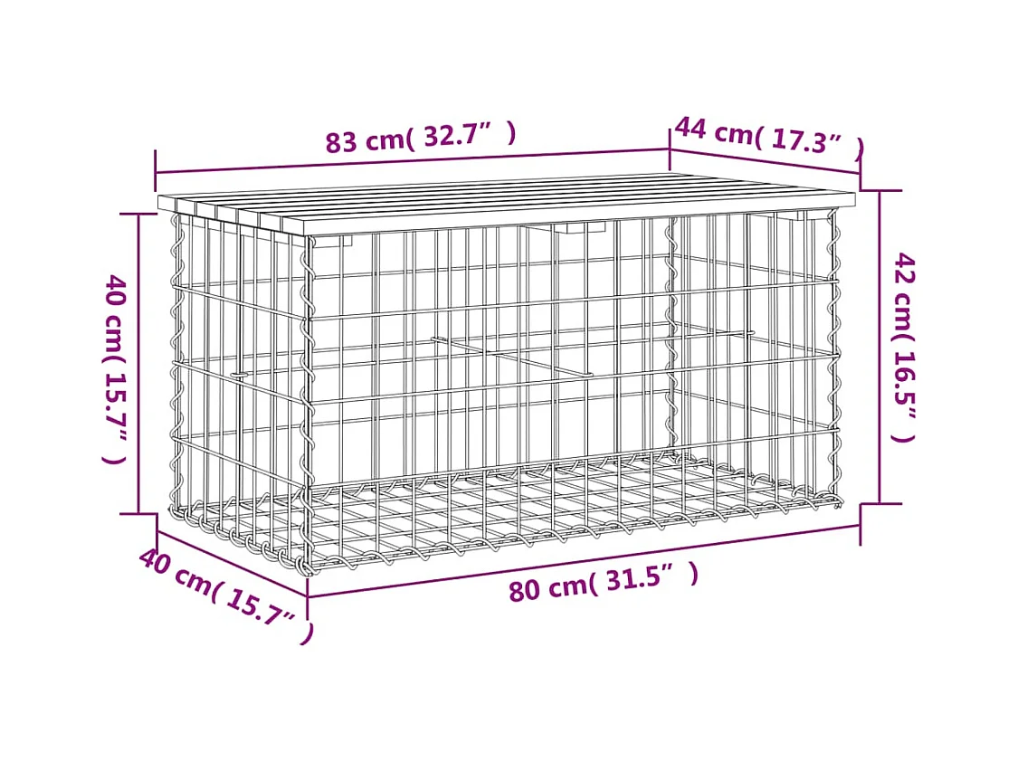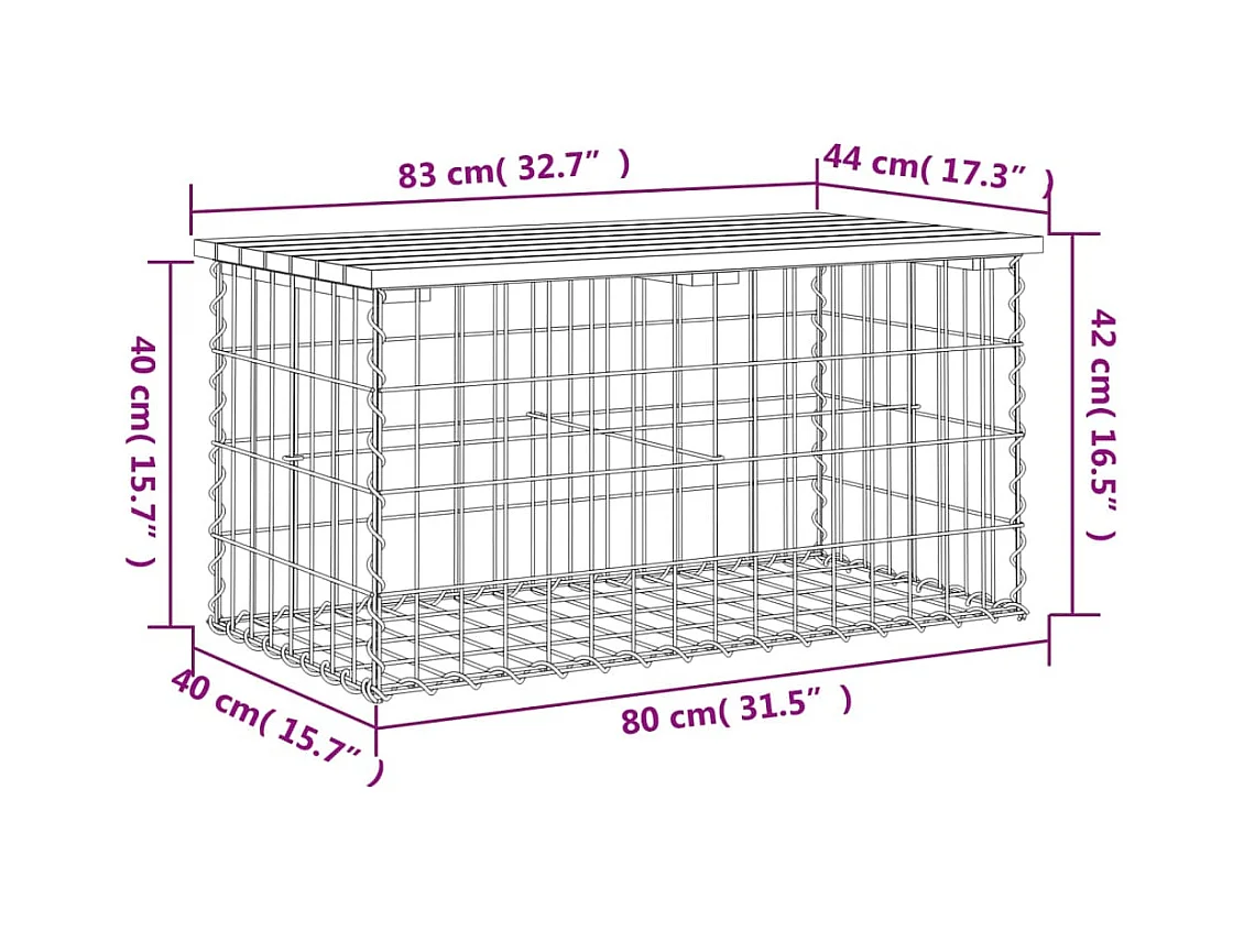 Banco jardín diseño gaviones madera pino impregnada 83x44x42 cm