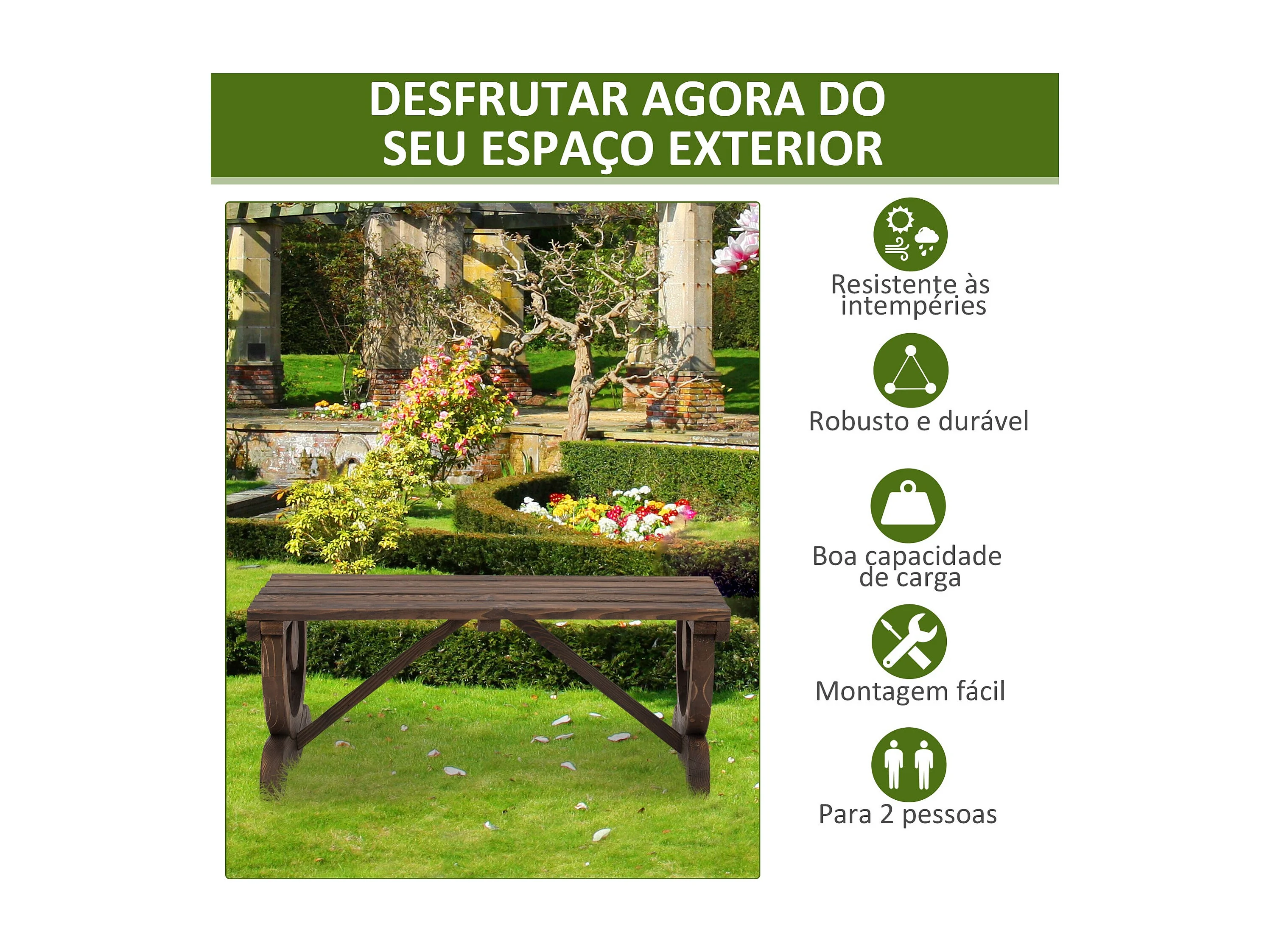 Banco de jardín Garten Outsunny 2 plazas madera de abeto 39,5x98x50 cm