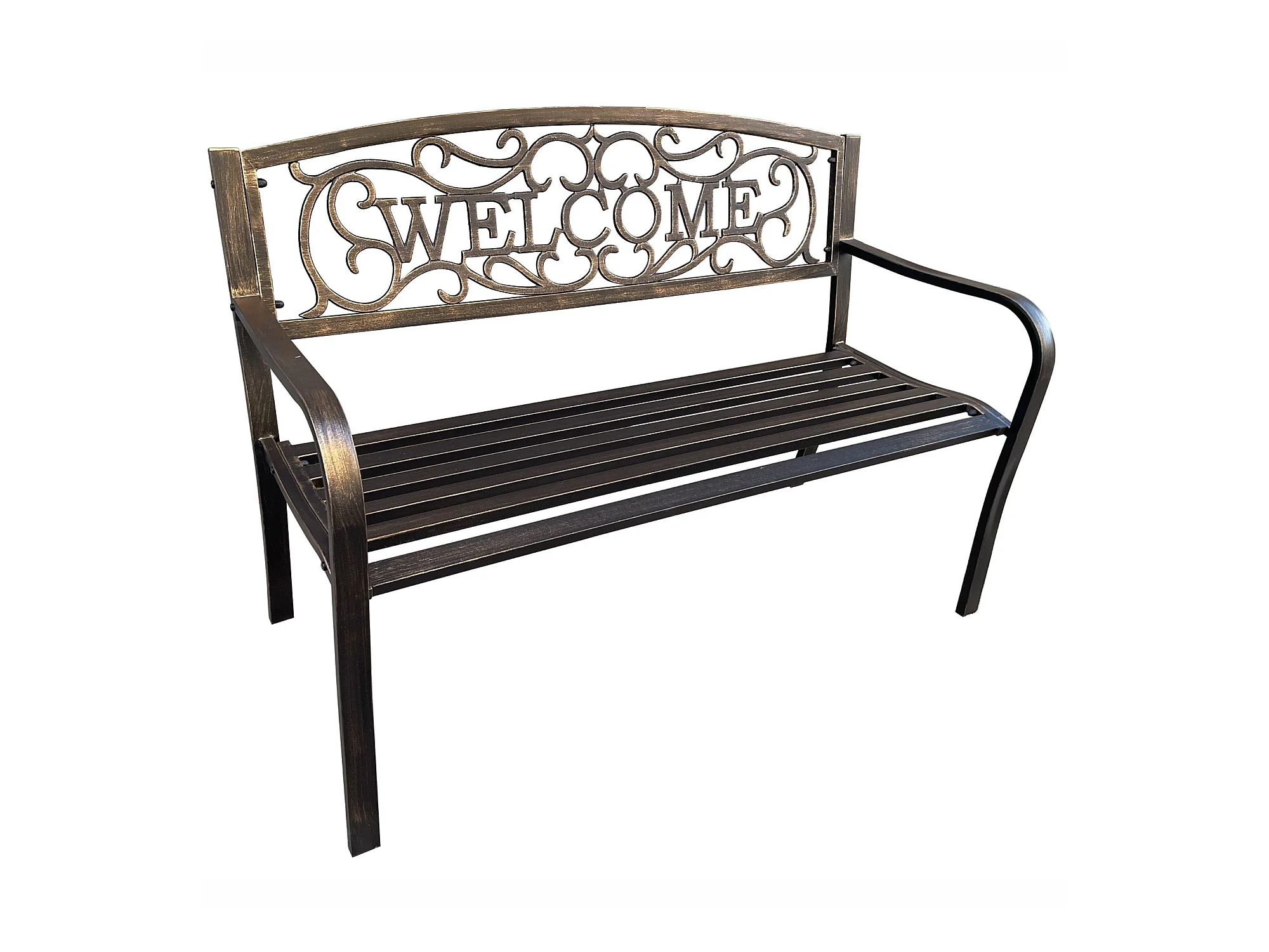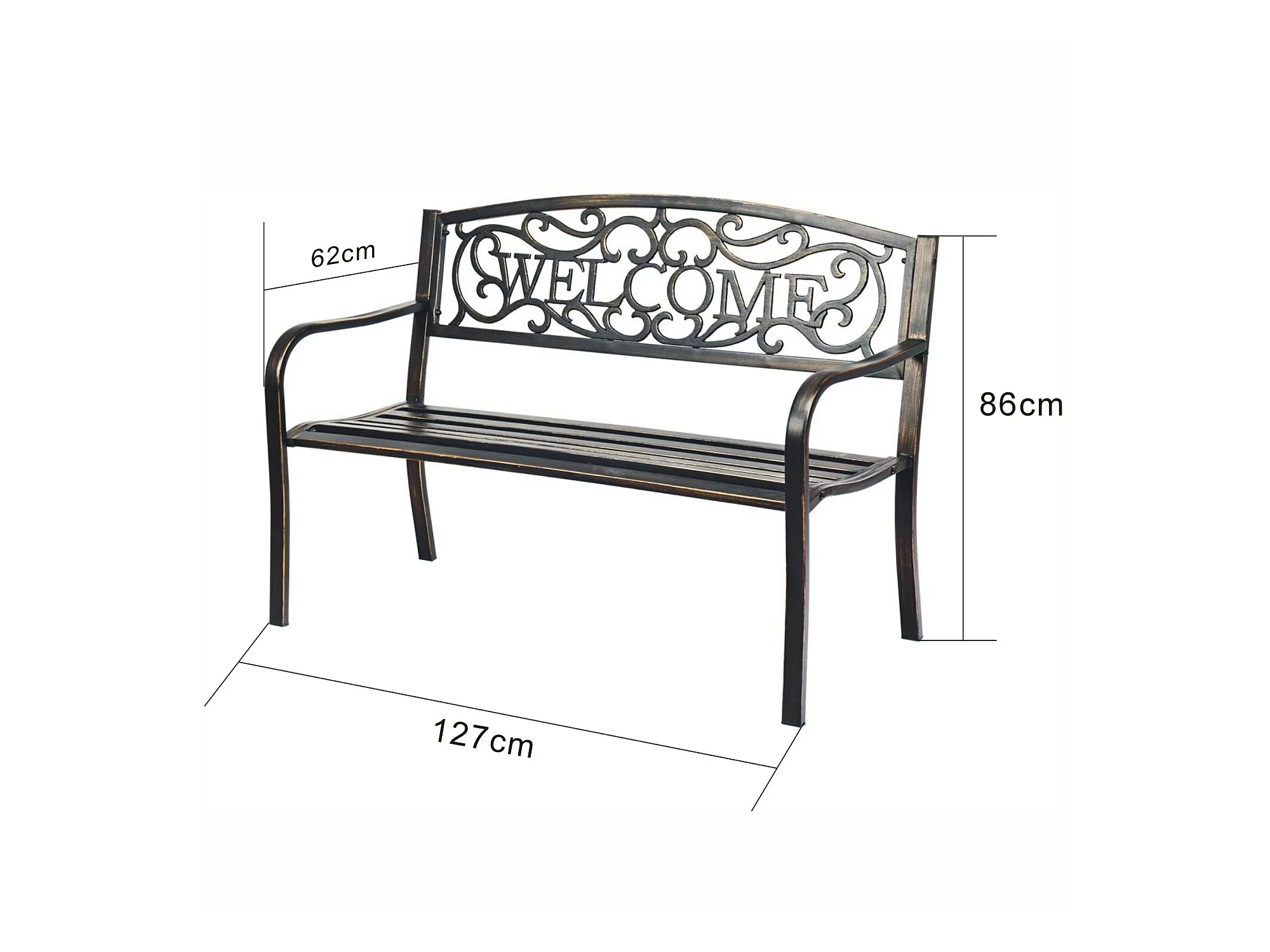 Banco de jardín IRYS Marrón con patas de acero y respaldo de hierro fundido de 127 cm de ancho