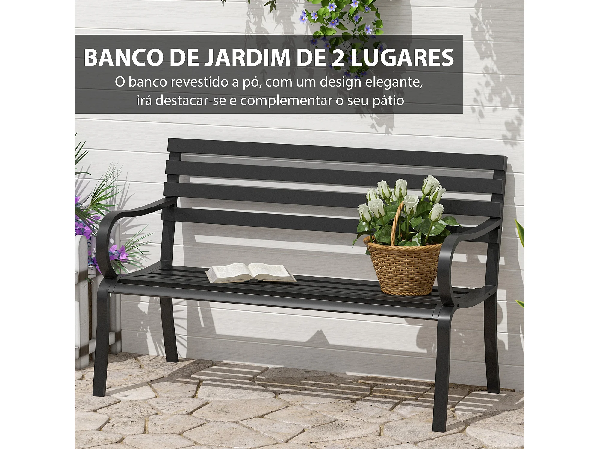 Banco de jardín Lago Outsunny 2 plazas 240kg negro 82x127x58 cm
