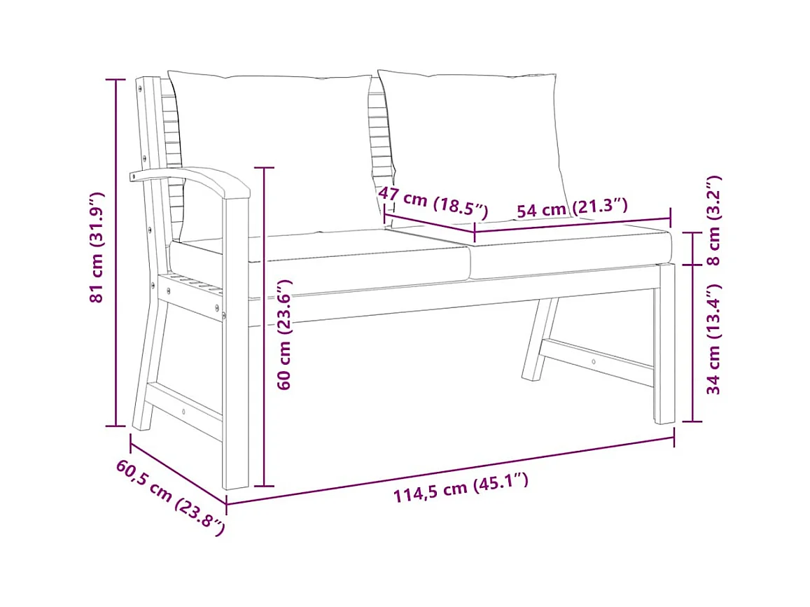 Banco de jardín madera de acacia y cojines gris oscuro 114,5 cm