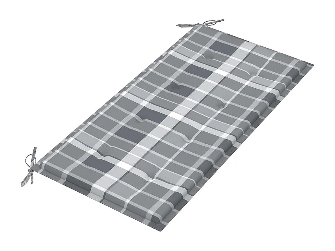 Banco de jardín madera de teca con cojín a cuadros gris 112 cm