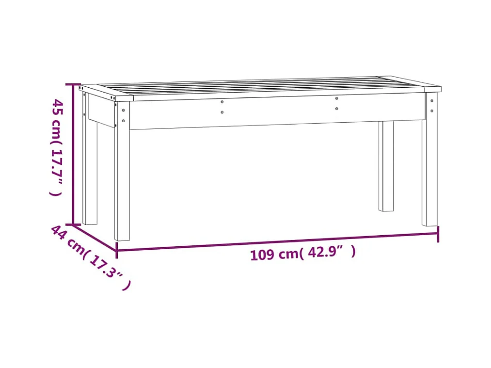 Banco de jardín madera maciza de pino 109x44x45 cm