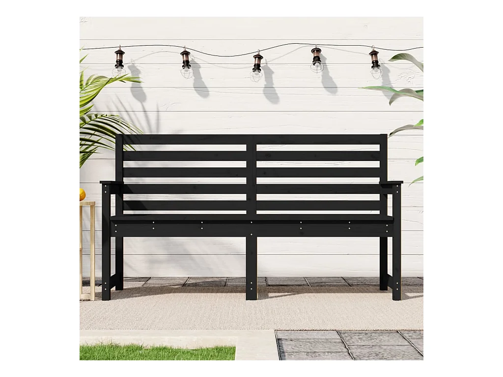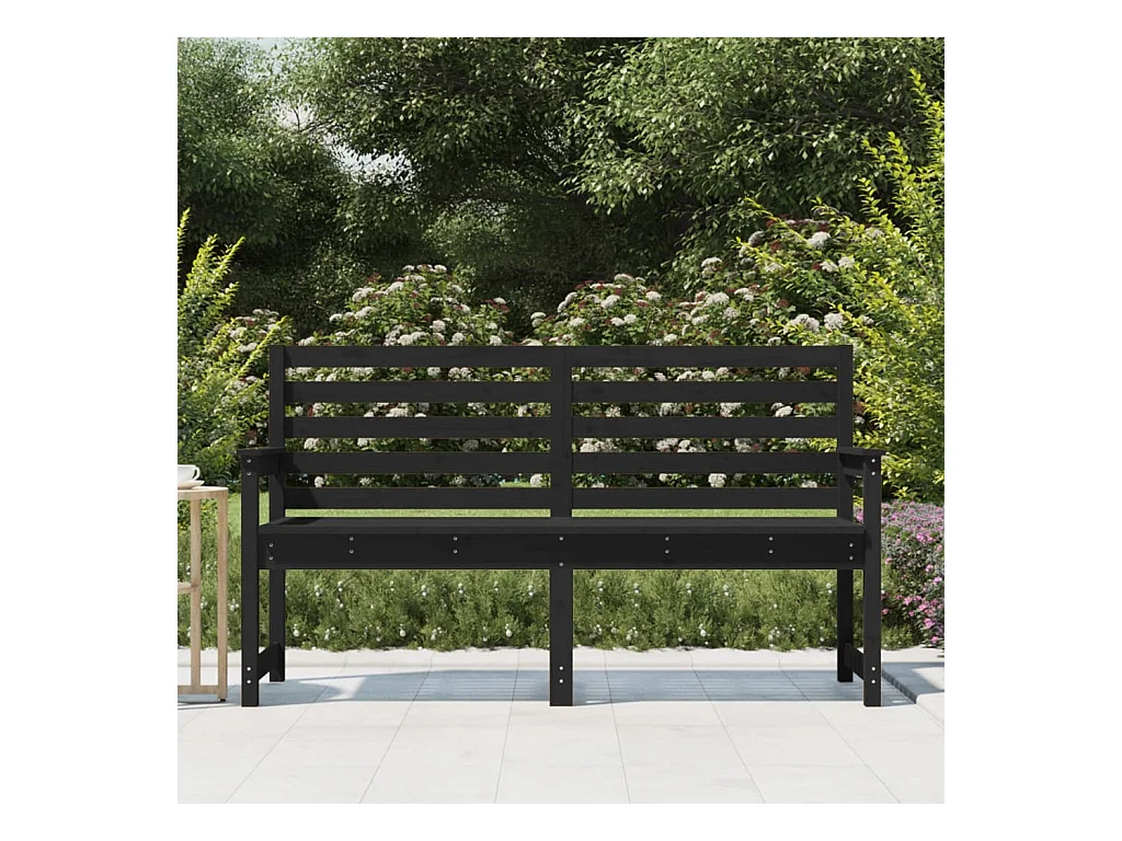 Banco de jardín madera maciza pino negro 159,5x48x91,5 cm