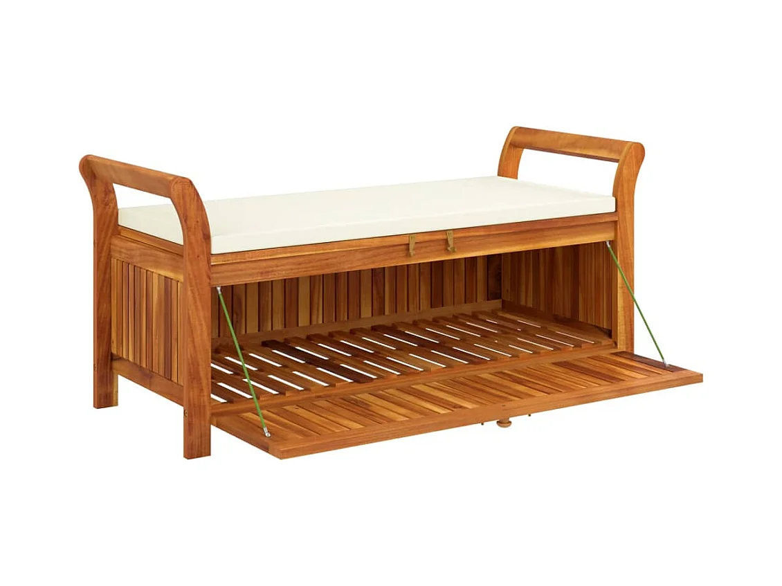 Banco de jardín Mobiliario de exterior terraza de almacenamiento de jardín con cojín 126 cm madera de acacia 02_0011808