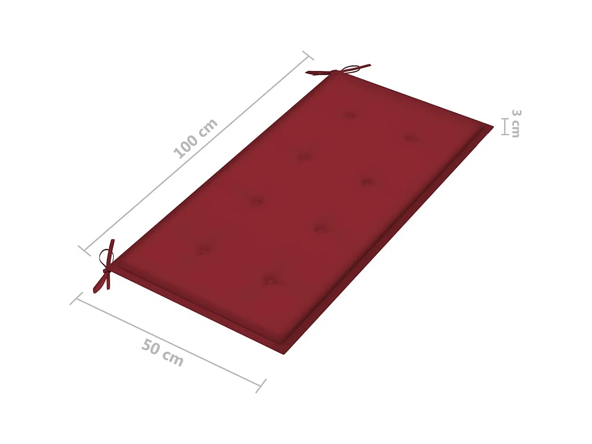 Banco de jardín Muebles de exterior para terraza con cojín rojo burdeos 112 x 55 x 94 cm teca maciza 02_0011541