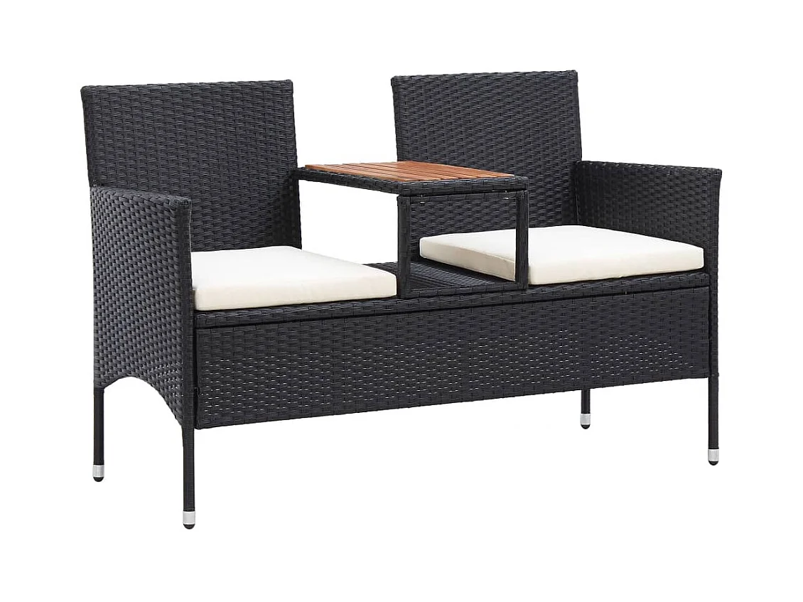 Banco de jardín Muebles de exterior para terraza de 2 plazas y mesa de té 143 x 65 x 88 cm resina tejida negra 02_0011311
