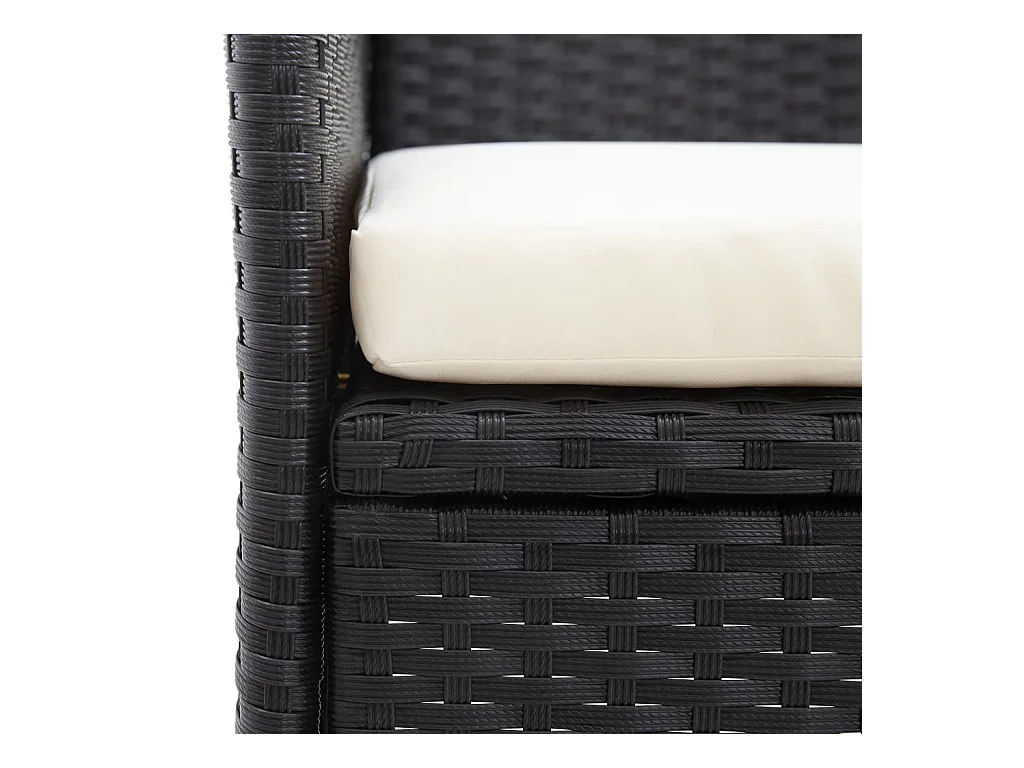 Banco de jardín muebles de exterior terraza de 2 plazas con cojines de resina tejida en negro 02_0011779